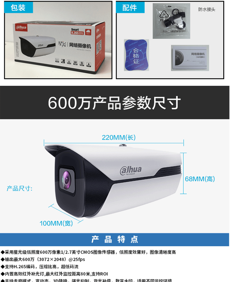 Dahua 6 миллионов Poe Star ночное видение высокая Очистить сетевой мониторинг камера DH-IPC-HFW2633M1-A-I2