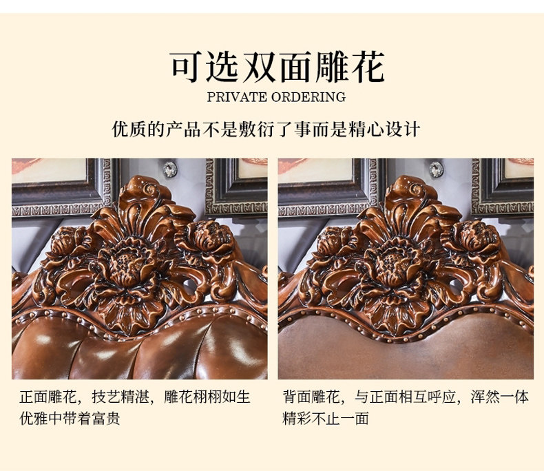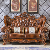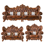 Континентальный из натуральной кожи Сочетание дивана 1234 гостиная американская вилла большая квартира кожаный Коричневый темно Орел классический Твердая древесная резьба