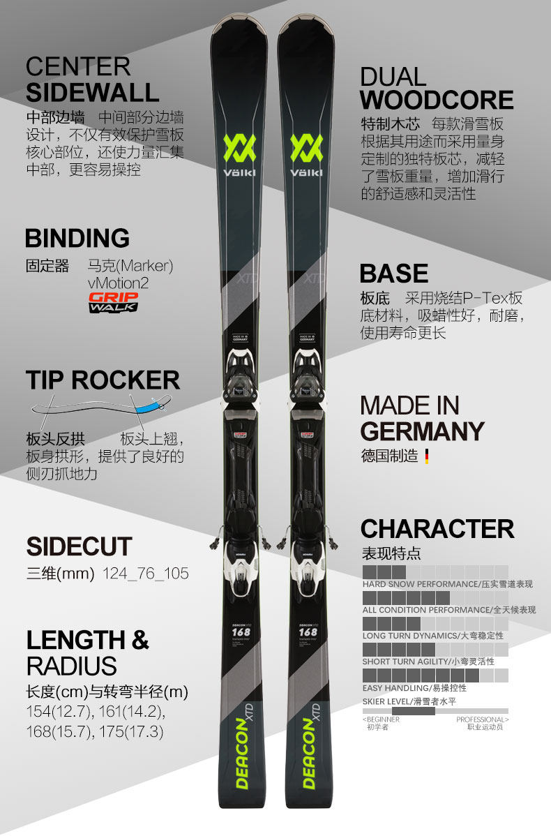 Лыжный двойной Volkl Walker панель снежная дорога полностью Региональные промежуточные лыжи панель DEACON XTD