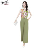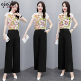 Печать профессиональных широких ног комплект женский популярный прогрессивный 2021. новая коллекция корейская версия западный стиль шифон сорочка два наборы