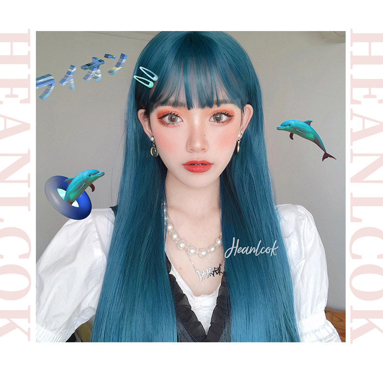 Парик, женские длинные прямые волосы JK Natural Sweet Qi Liu Hai красный полностью Мягкая сестра Лолита голубой крыло
