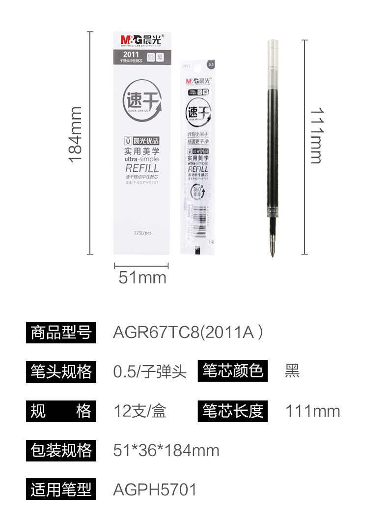 Chenguang Stationery Быстросохнущая гелевая ручка Refill 0.5 Exam для Пополнить маркер экзамена студента отличного продукта бесплатная доставка по китаю 12 коробочных экзаменов для Заполнение гелем