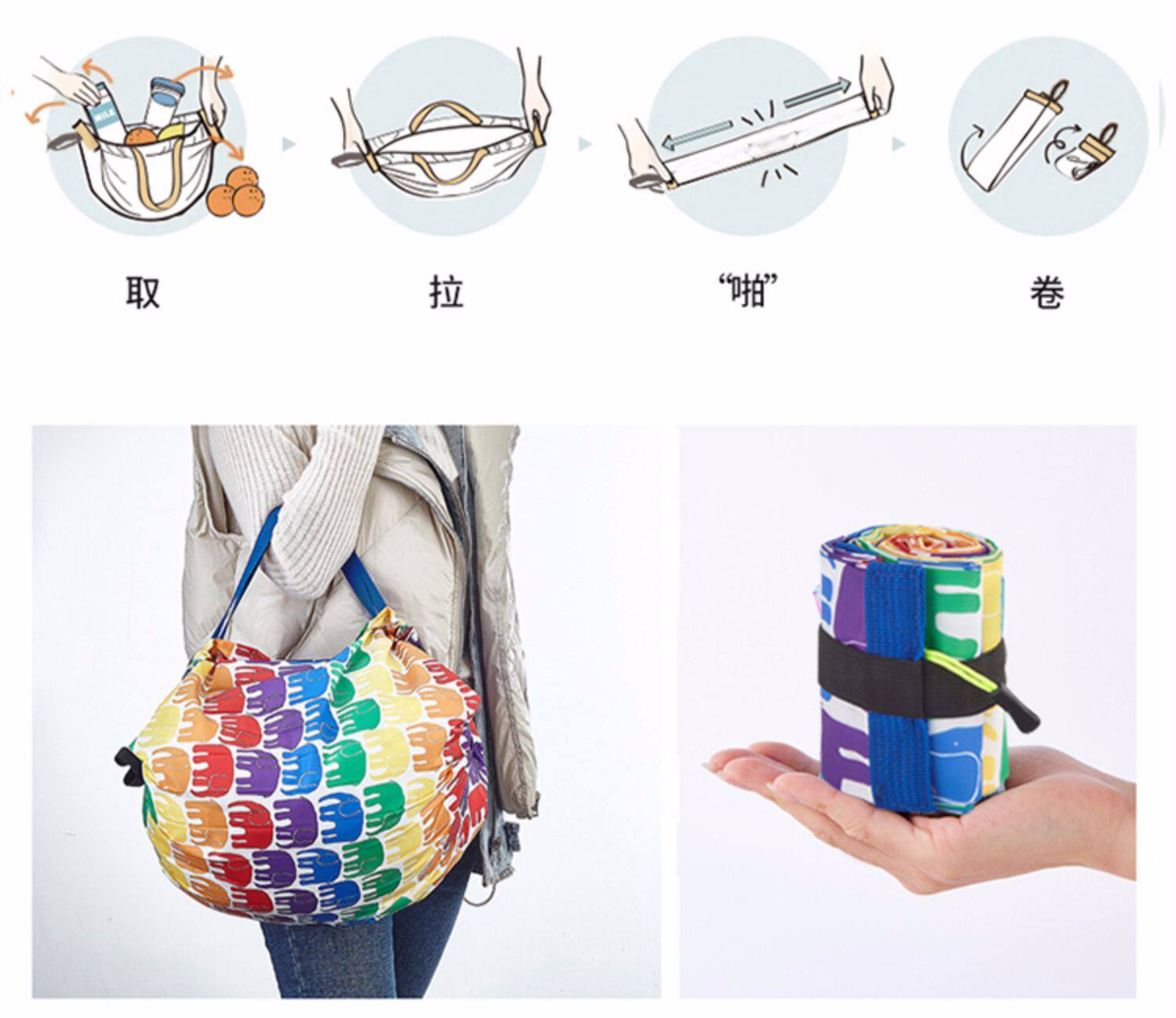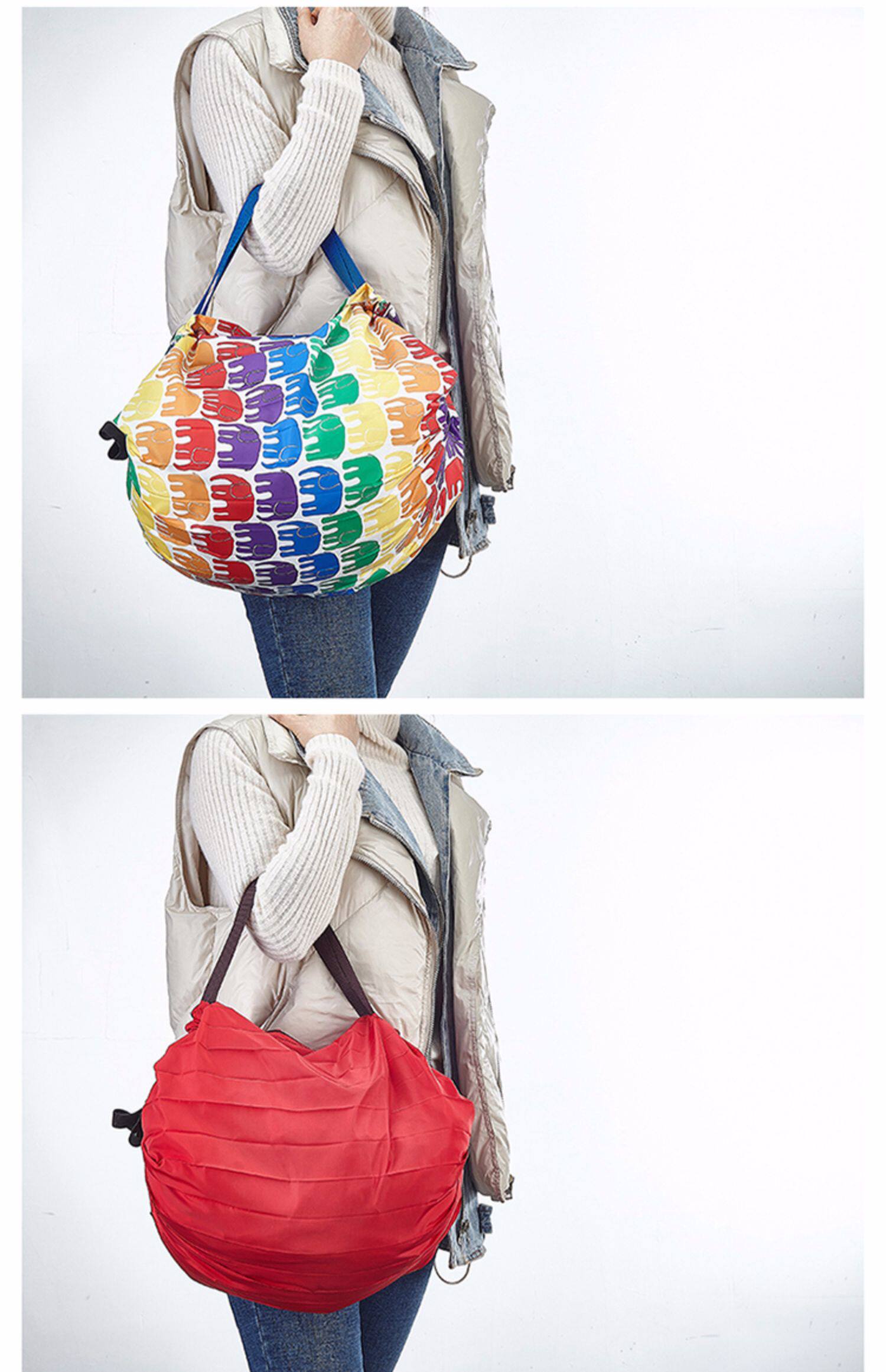 Путешествовать один Экологически чистые сумки на плечо женщины маленькие со складыванием Сумка для хранения Портативный супермаркет Купить овощи пакет Горстная емкость