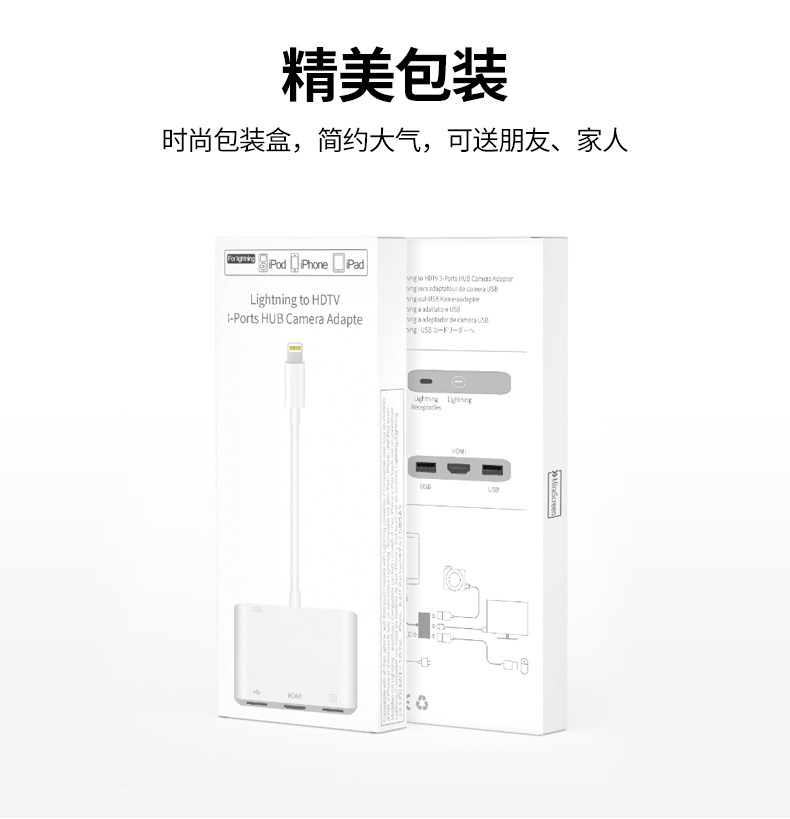 Больше яблочного освещения для HDMI высокая Прозрачный проектор OTG Adapter iPad Flat панель Конвертер iPhone на мобильном телефоне в тот же экран U Диск VAG Interface TV с проекцией инструмент
