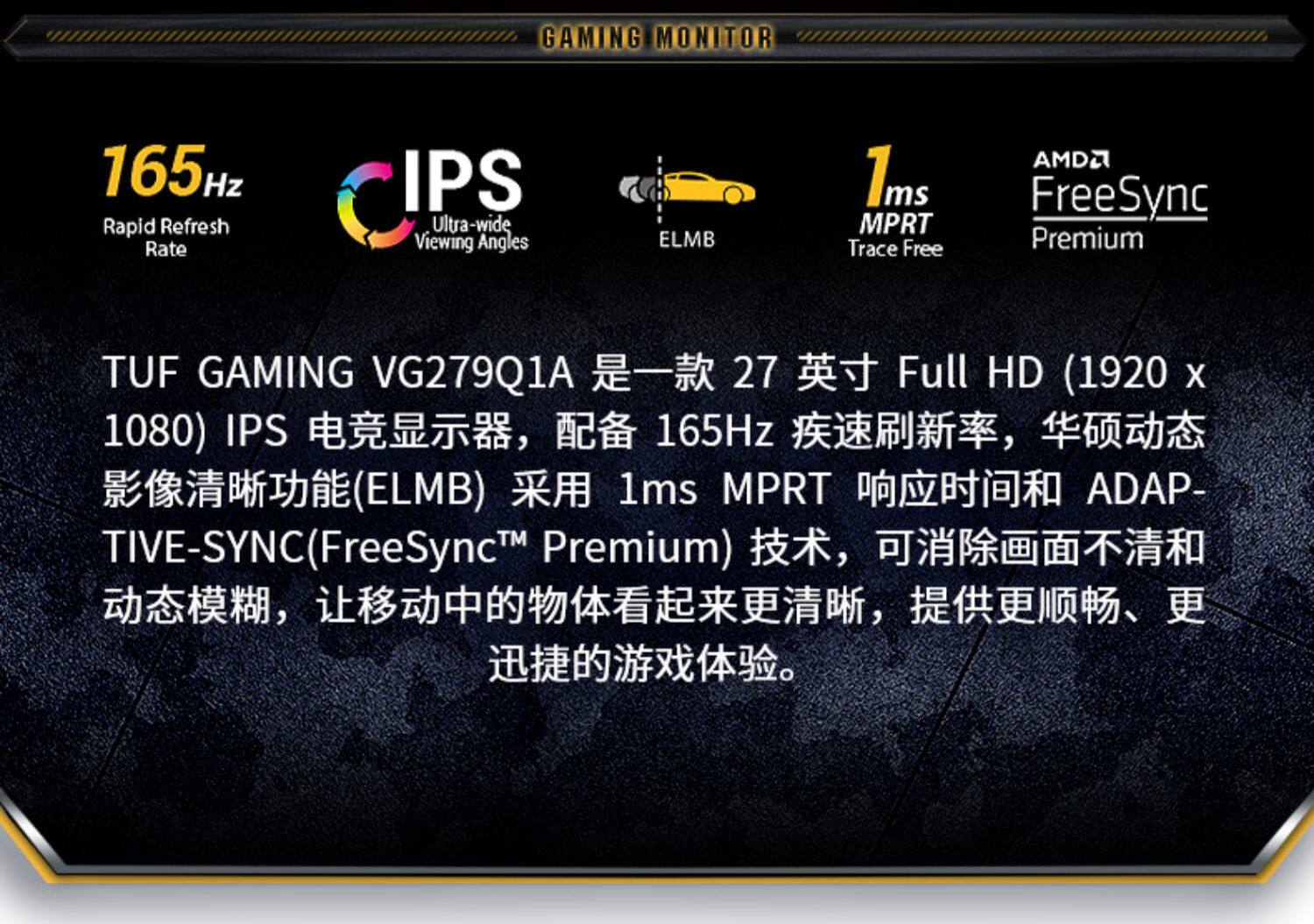 ASUS/ASUS VG279Q1A E -SPORTS Отображение настольного компьютера IPS 27 -INCH 165 Гц игровой дисплей