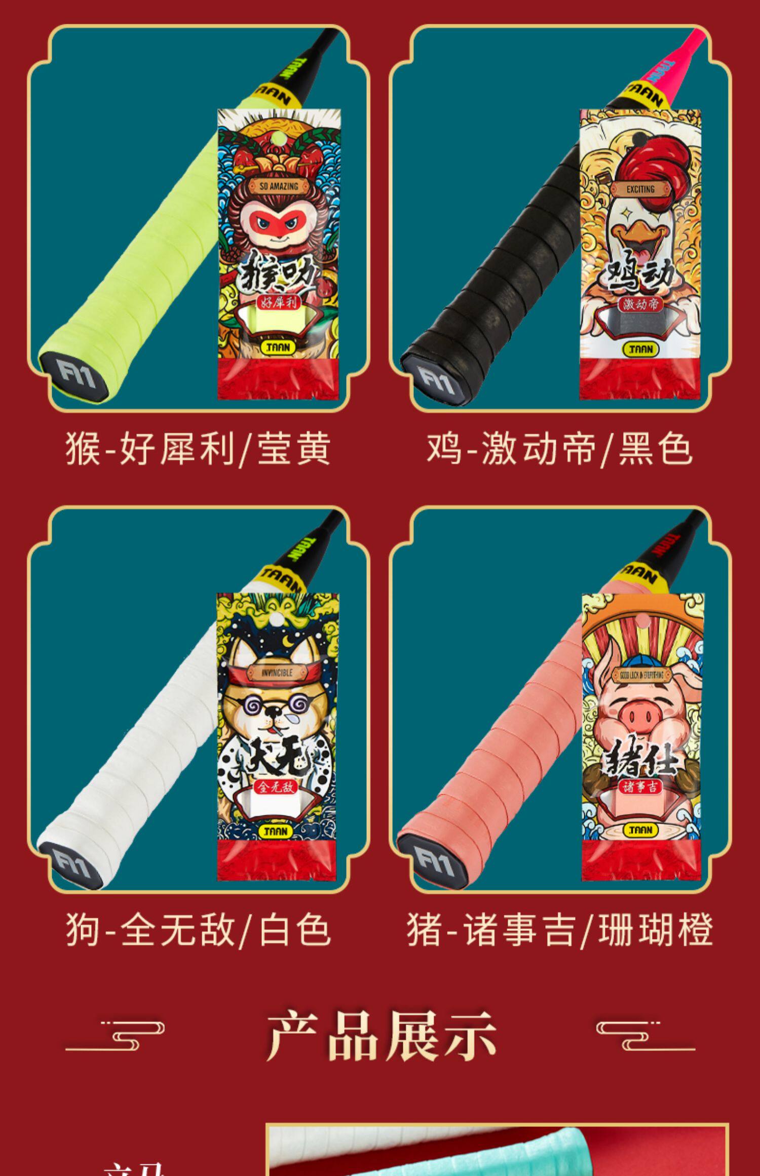 Taan Taen Badminton Racket Рука Резиновые аксессуары Теннисные хлопья Ручка Запутанная Национальная приливная рука Клей нескользящие Слингсота