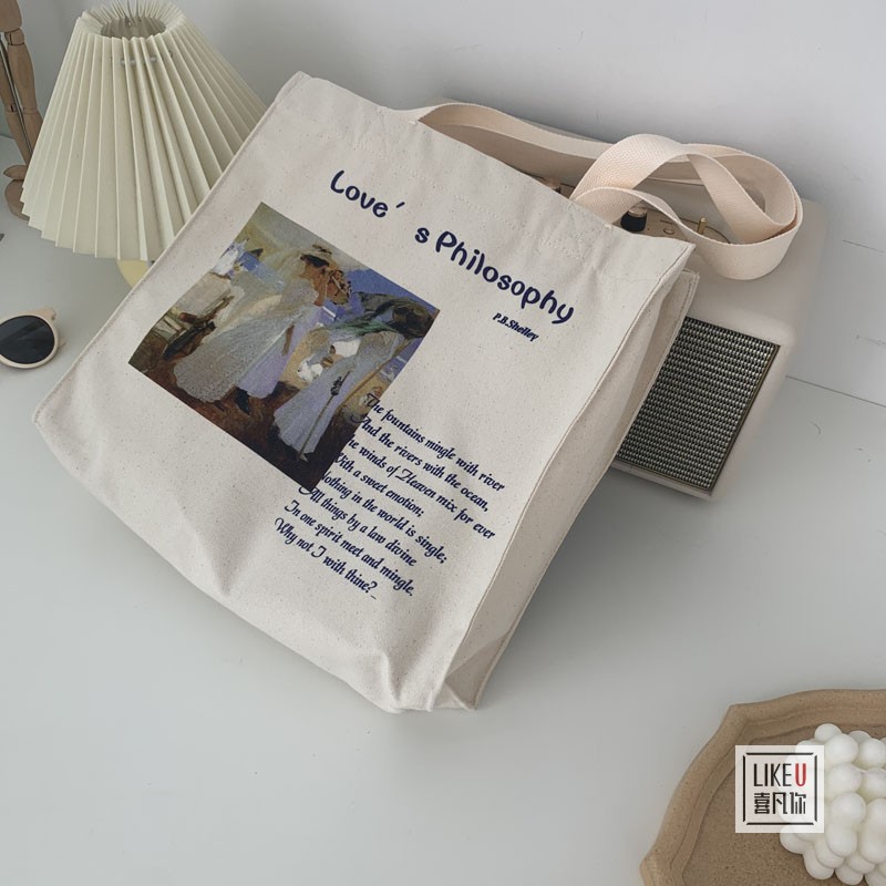 2020 оригинальная картина маслом Моне один плечо пакет Учебник пакет Сумка для покупок в литературной простой холсте большой емкости пакет
