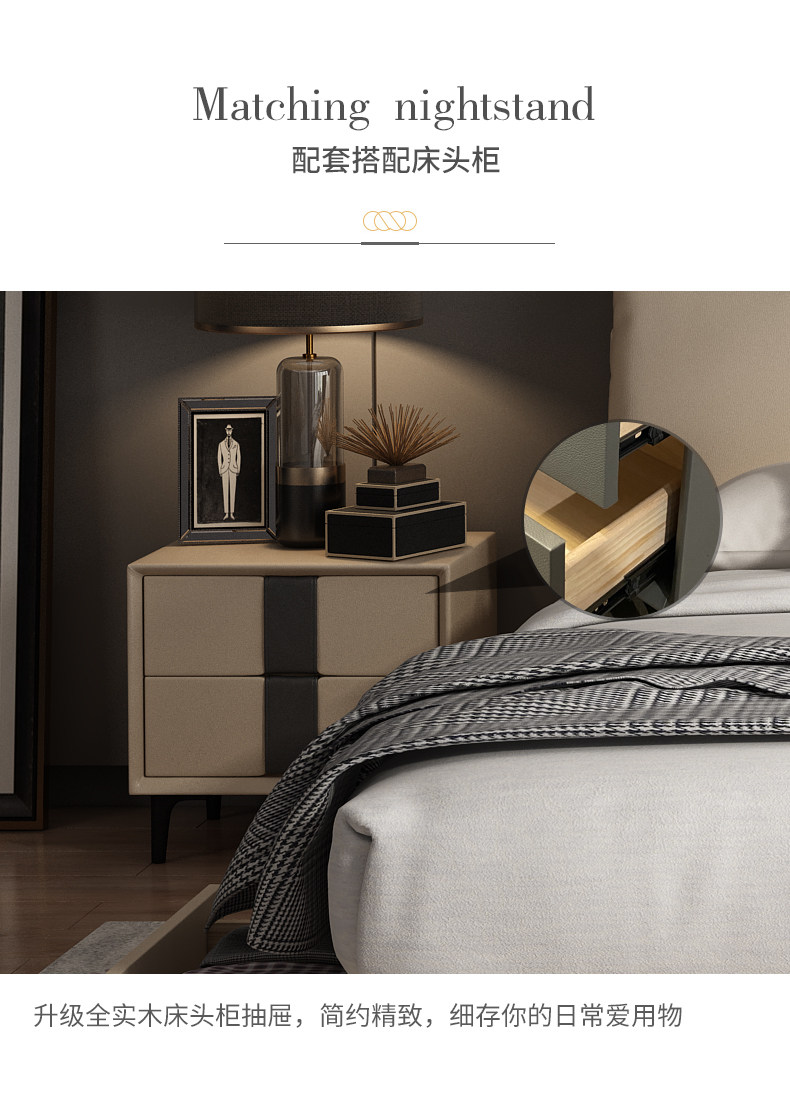 - Твердое дерево из натуральной кожи Кровать + тумбочка 2(Ящик из массива дерева)