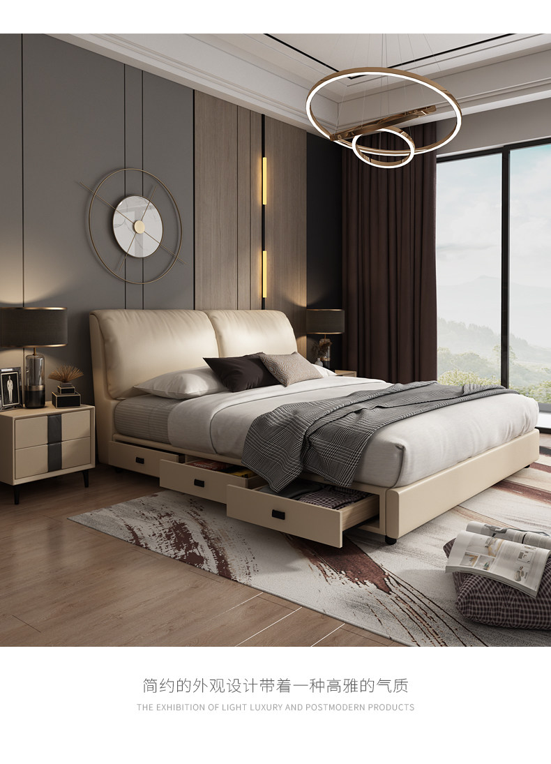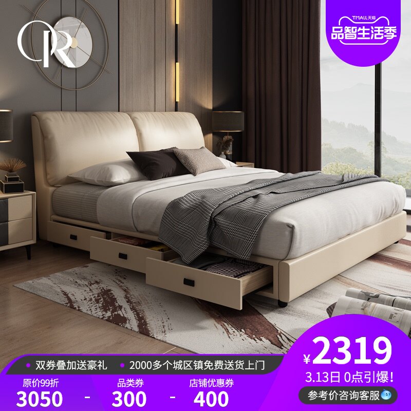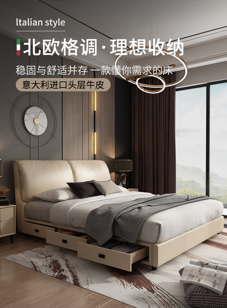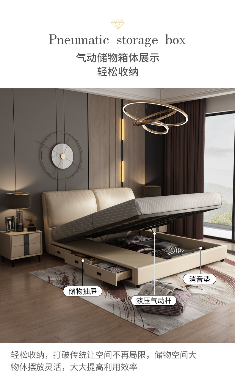Северная Европа высокая Ящик для хранения из натуральной кожи Кровать сейчас поколение Простое хранение, ящик для двуспальной кровати, большая кровать, 2 метра, небольшая хозяйственная кровать
