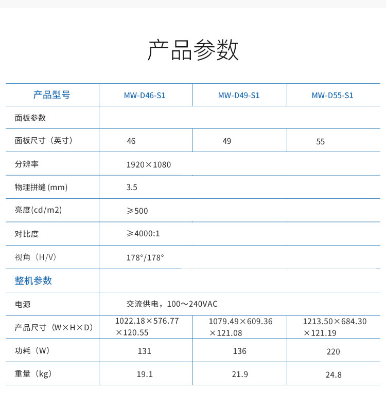 Цвет: MW-D46-S1【46-дюймовый】, MW-D49-S1【49 дюйма】, MW-D55-S1【55 дюймов】, MW5255-G6-U, DMC9000-2U