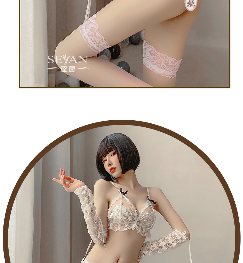 - Белый Три очка (три очка ( содержит перчатки )+ розовый охват ноги в бедре Чулки