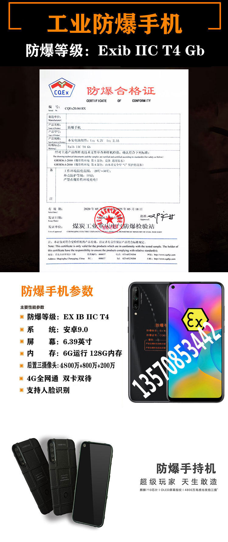 Описание товараИскробезопасность крупного бренда полностью Мобильный телефон взрывозащищенного типа, сертифицированный авторитетным национальным органом по сертификации взрывозащиты, может широко использоваться в: нефтегазовой отрасли, сфере обращения с отходами, горнодобывающей промышленности.(хорошо низ Кроме), Угольная промышленность, химическая / фармацевтическая промышленность, противопожарная и другие отрасли промышленности; искробезопасность полностью Типа мобильный телефон взрывозащищенный! Спасибо!