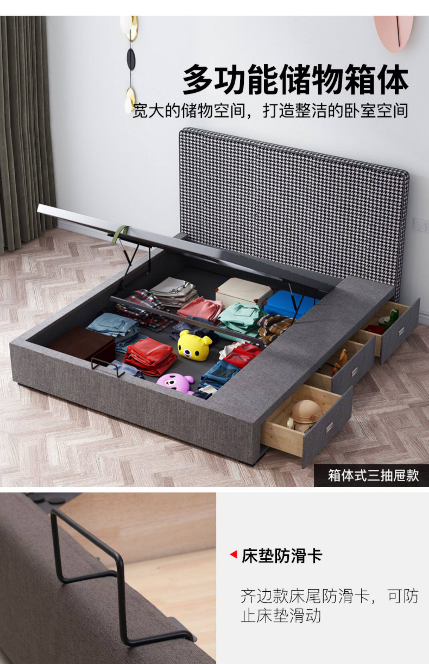Северная европейская птица наземная кровать 1,8 м Маленькая квартира главный спал поколение Простая двуспальная кровать высокая Коробка хранения высокая Созревание