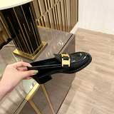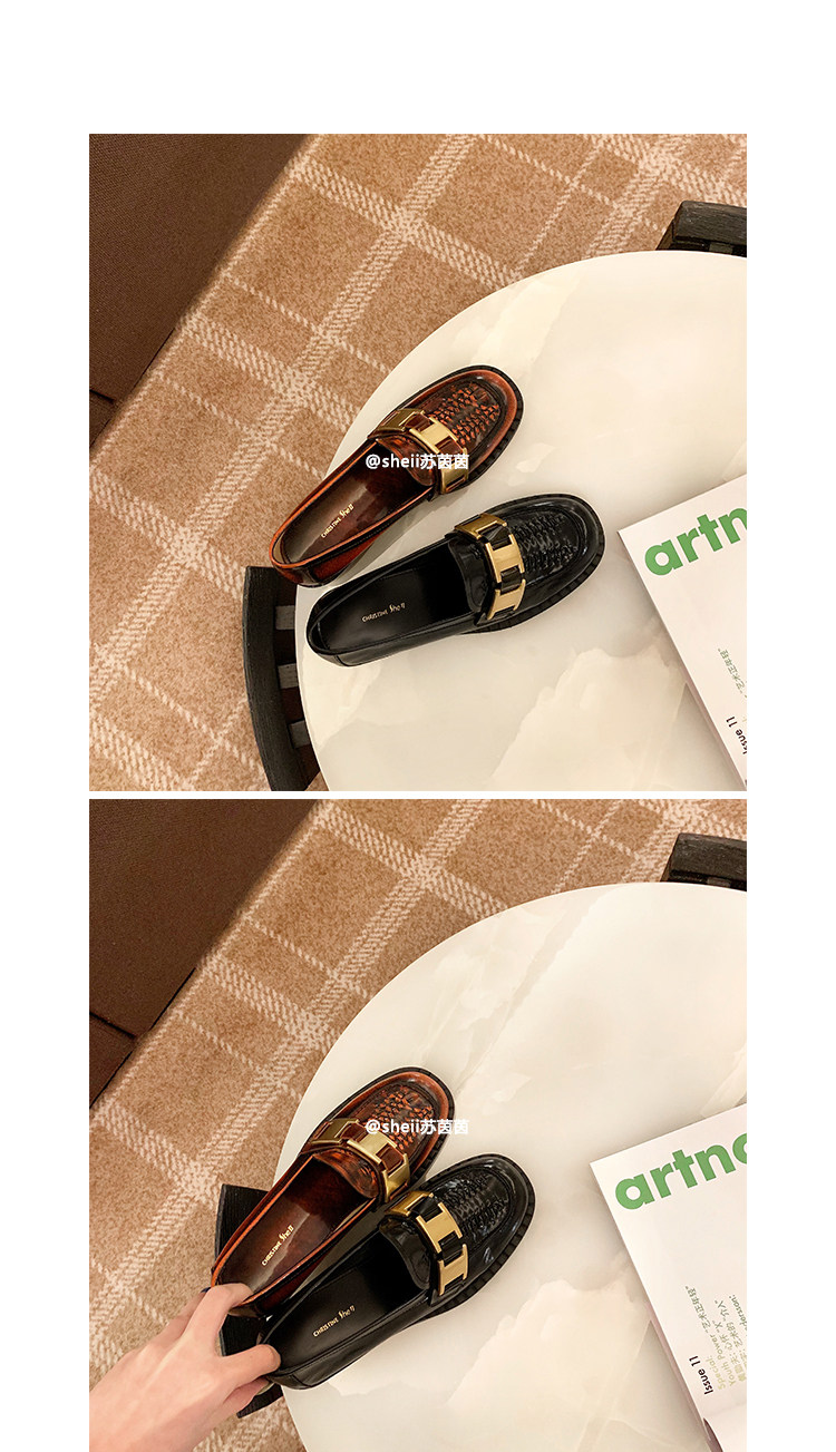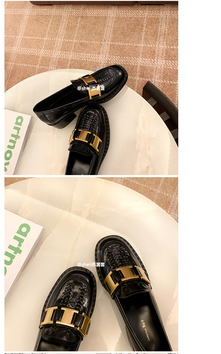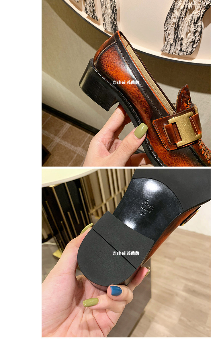 【Шеи Су Инь】Лиза фасон унисекс ~ новая коллекция из натуральной кожи металлический с застежкой широкий каблук Небольшой кожаная обувь Безлистые туфли туфли