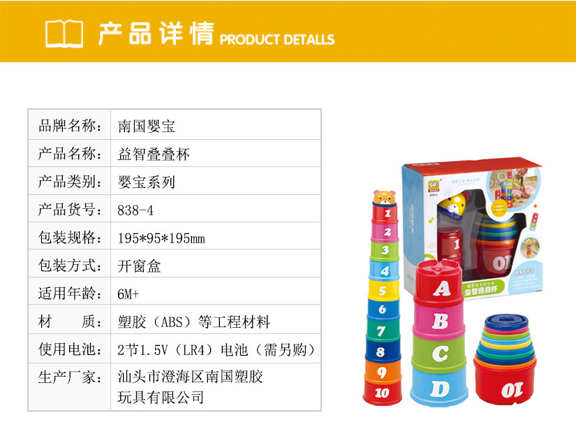 Южный Китай Baby Bao детские Головоломка Укладка Кубка Обучение детские Дождь не долитый, 1-3 года набор, чашка игрушки