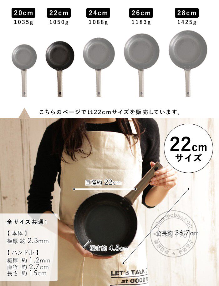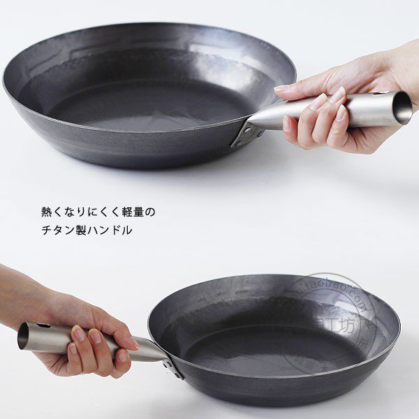 Японская компания Yamada Industry Co., Ltd., производящая чистое железо на плоской подошве Сковорода 2.3мм толстая Открытое пламя индукционной плиты с титановой ручкой 20-28см