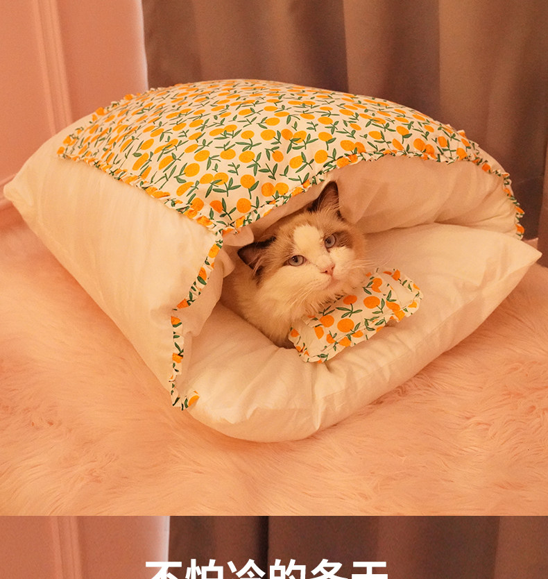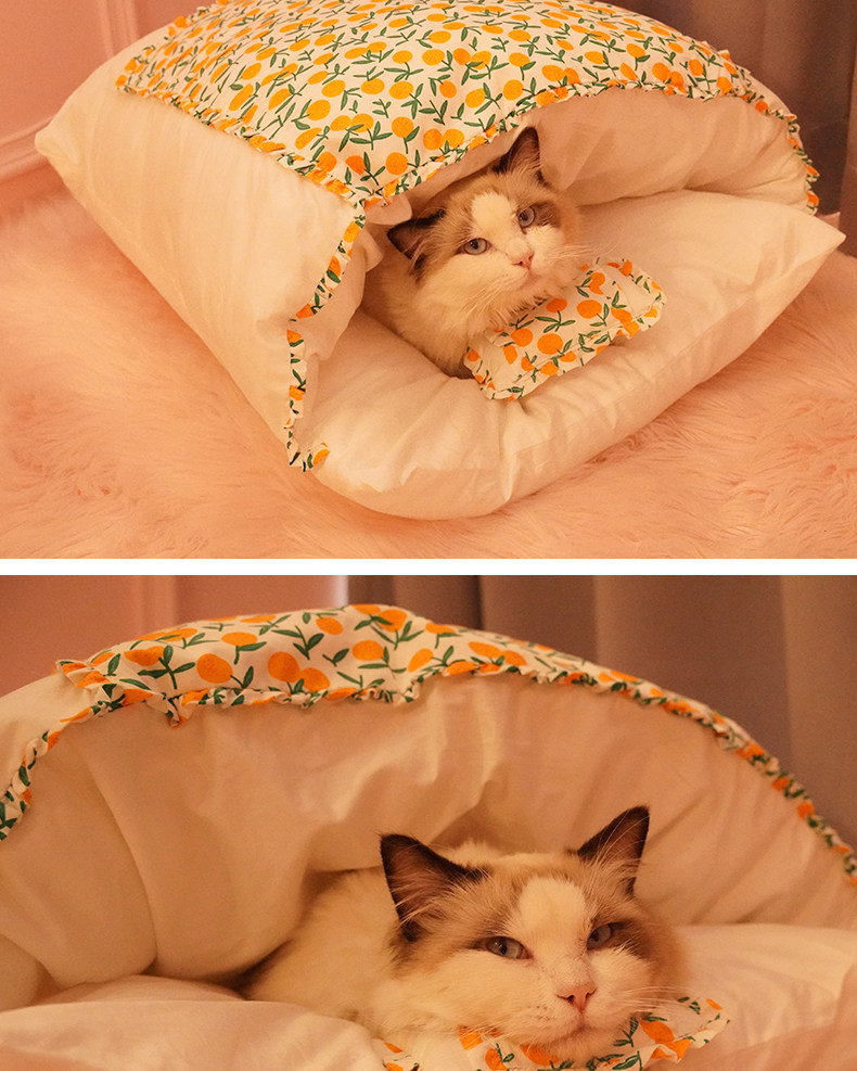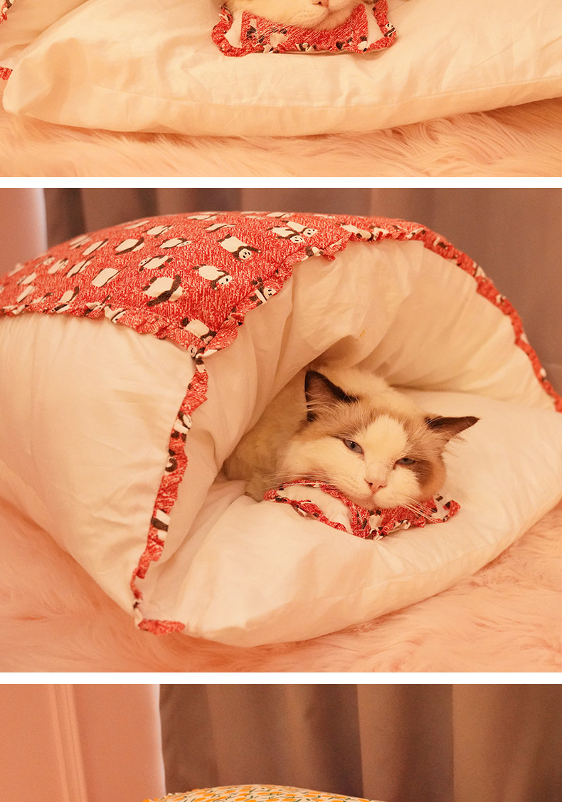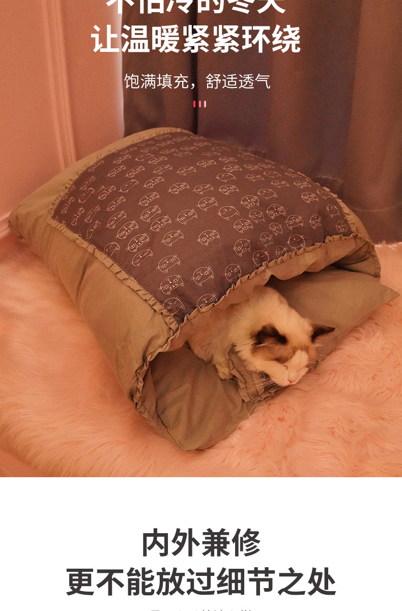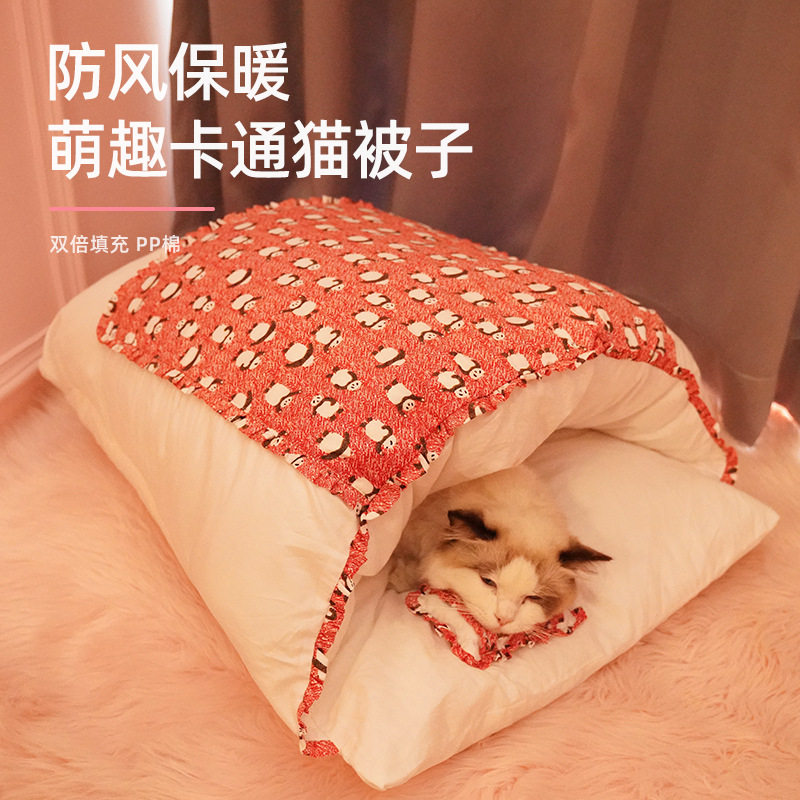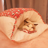 Кошачье гнездо зимний удерживающий тепло Спальный мешок для кошек, съемный и моющийся, спальный мешок для кошек, спальный мешок для кошек, закрытый, японский питомник, зима