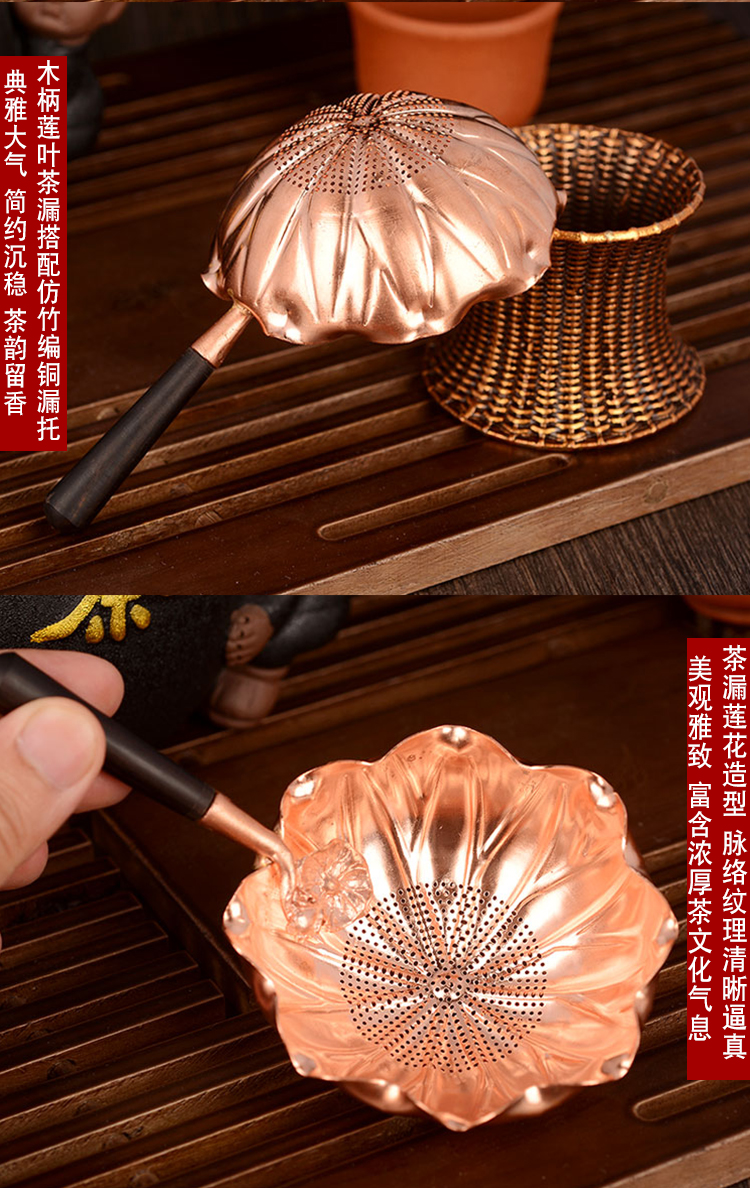 Утечка медного чая Dizu, утечка медного чая, комбинация листьев лотоса, золотая жаба копия Бамбуковые тканые креативные аксессуары для чайных сервизов чайный фильтр