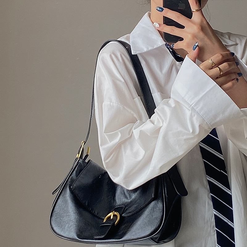 Како Весна / Лето 2021 европейский стиль новая коллекция винтаж Высокая емкость один Плечо и подмышка низ пакет Матч механизм камеры Портативная девочка пакет