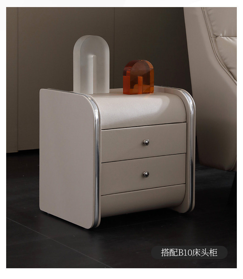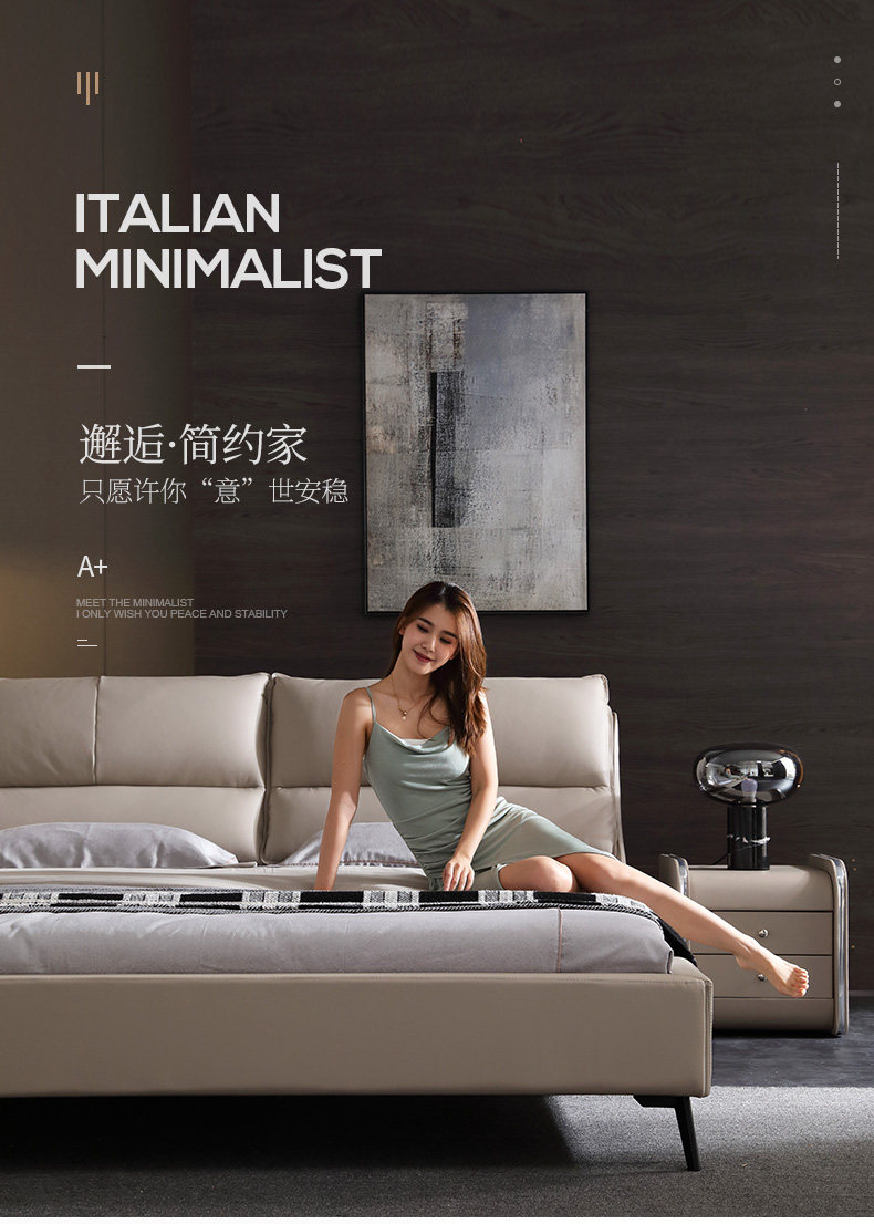 Минималист из натуральной кожи Кровать сейчас поколение Простая маленькая квартира в спальне с кожаной кроватью в итальянском легком роскошном стиле цвет "слоновой кости" своего рода панель Двуспальная кровать