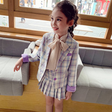 На девочку европейский покрой комплект Маленькая девочка весеннее платье новая коллекция Иностранная сеть красный клетчатый Разъем демисезонный Китайские крупные дети наборы