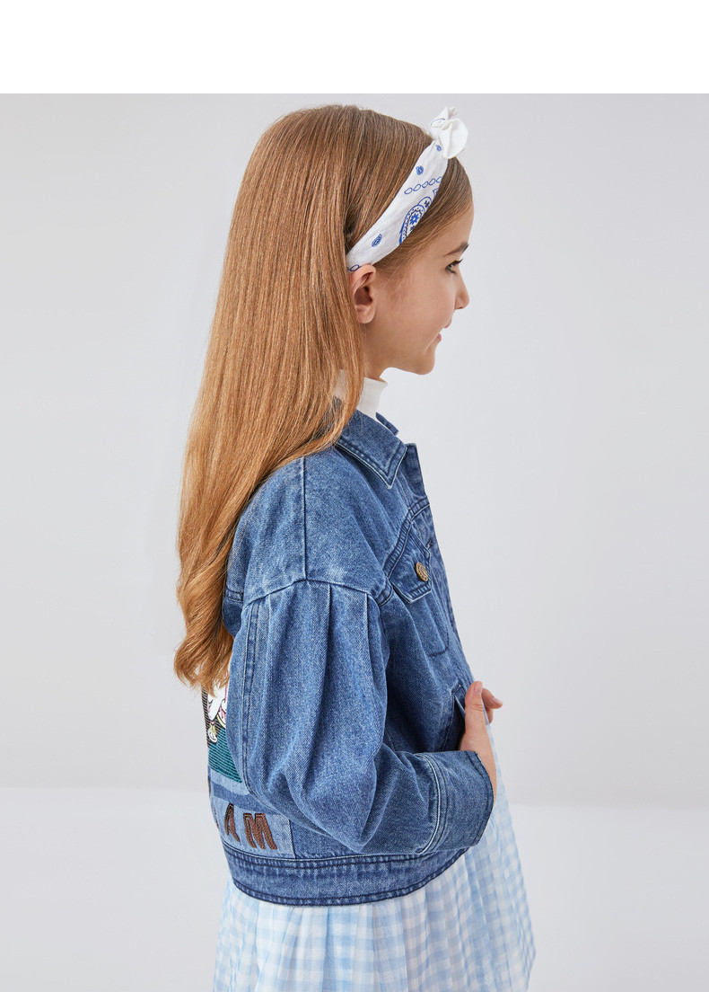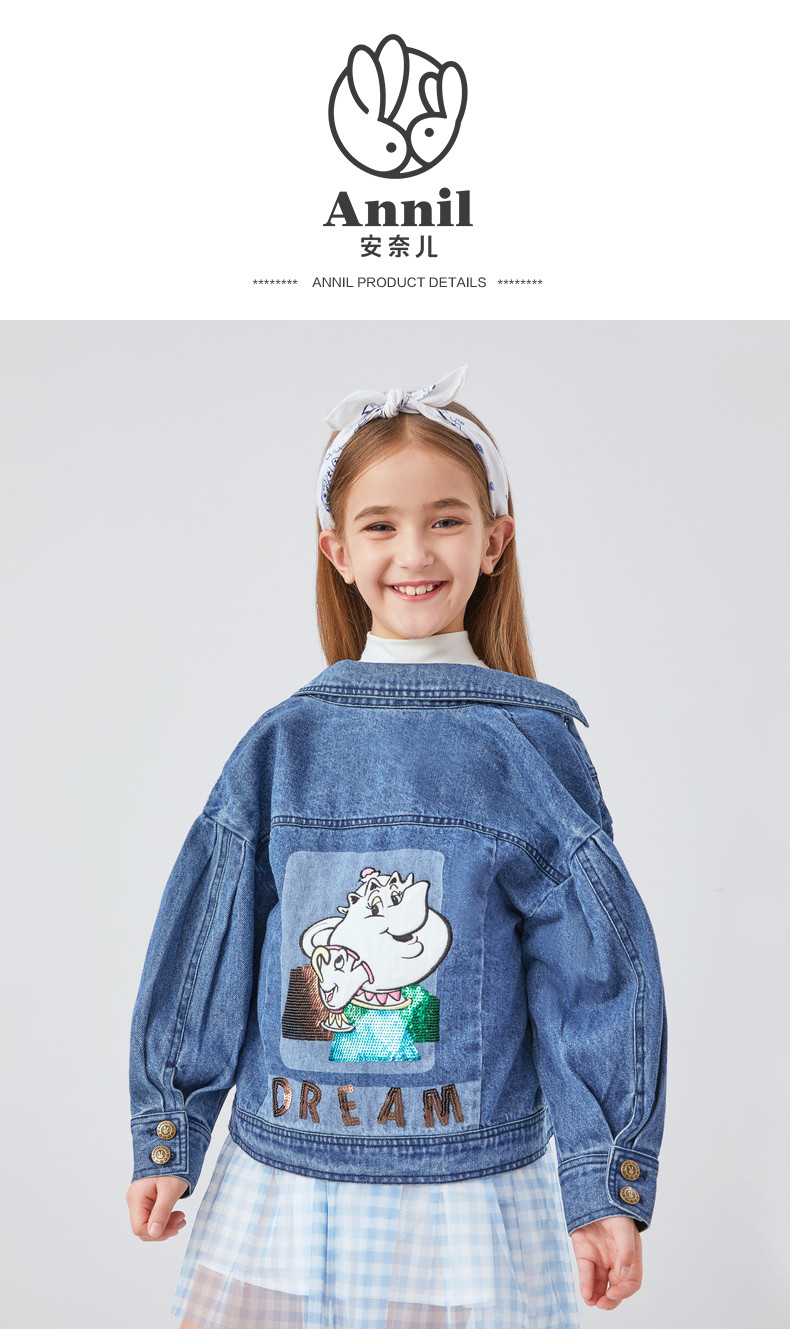 Аннаи детские Наряд на девочку джинсовый жакет куртка осень стиль ученик популярный джинсовый верх Дисней