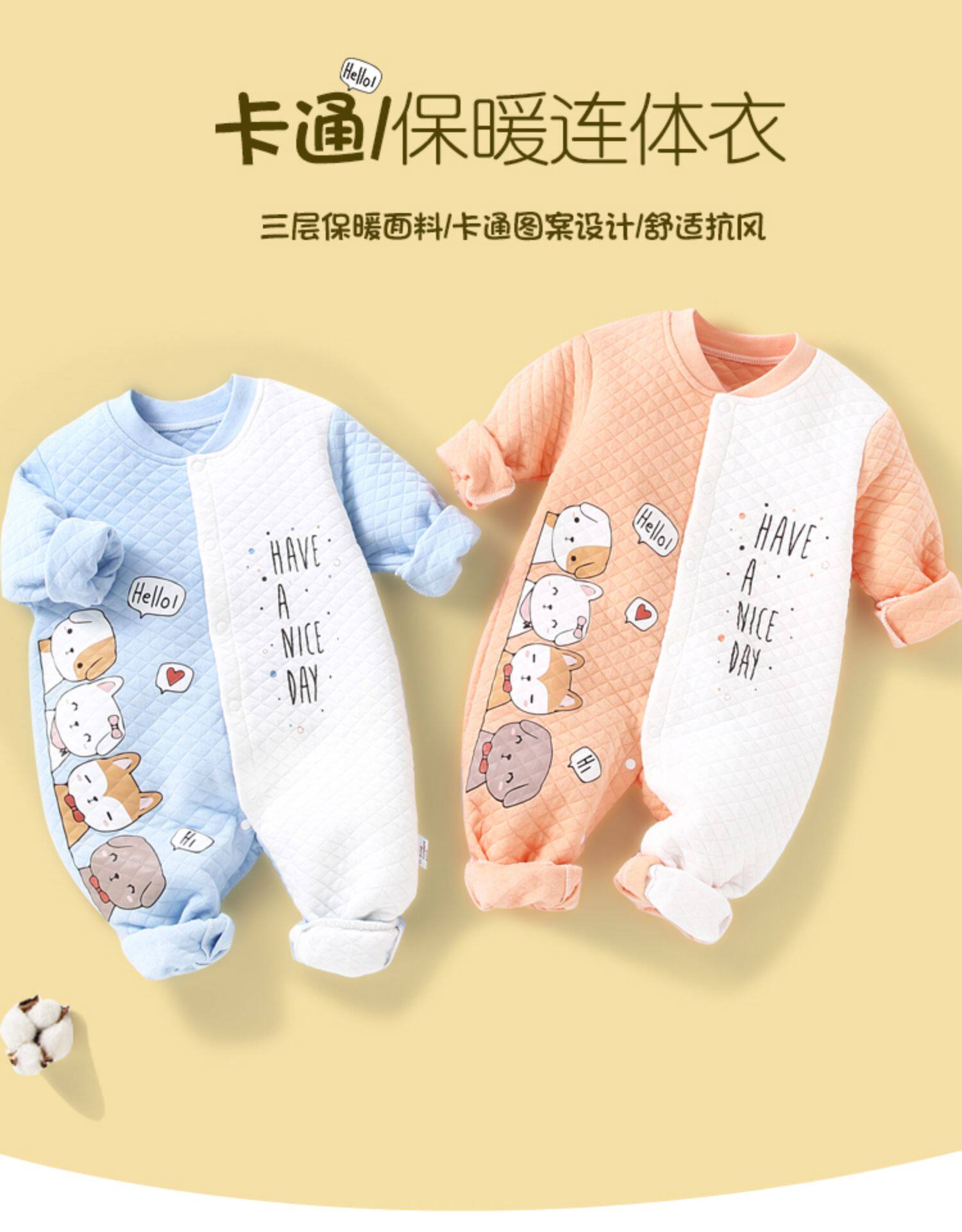 Демисезонный осенний комбинезон, удерживающая тепло стеганая одежда для девочек, пижама для новорожденных, боди, куртка