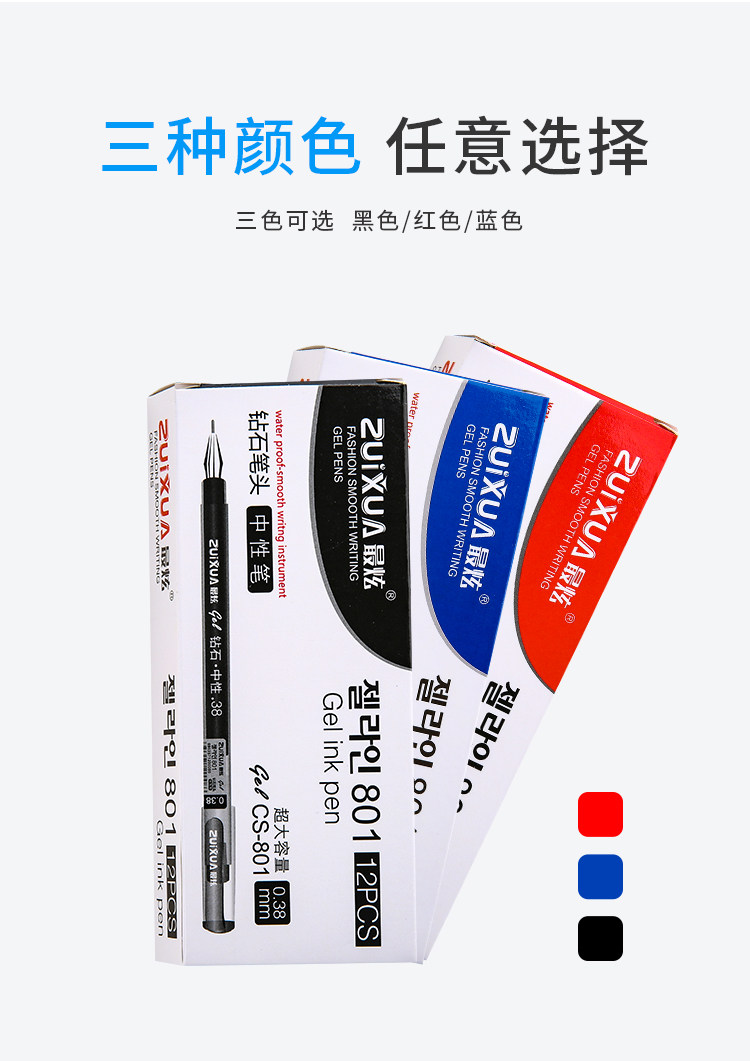 Цвет: 0,38 мм( черный 12.), 0,38 мм( красный 12.), 0,38 мм( голубой 12.), 0,38 мм(4. черный 4. красный 4. синий ), 0,38 мм(Шесть черный Шесть красный ), 0,38 мм(Шесть черный Шесть синий ), 0,38 мм(Шесть красный Шесть синий ), 0,38 мм(Восемь черный 2. красный 2. синий )Писать густые: 0.38mm