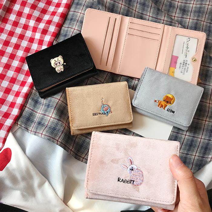 Милый мультфильм вышивка животных свинья девушка замшевый 30% студент кошелек короткий Деньги пакет кролик Деньги пакет