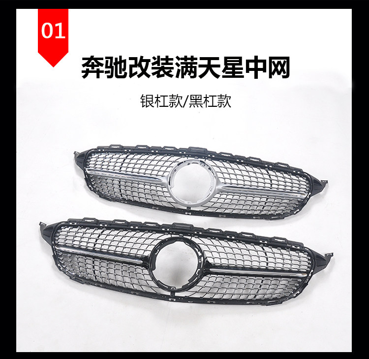 Подходит для Mercedes -Benz C200L Full Star решетка GLB/21GLC260L/E300L/A вертикальная полосатый GT решетка обновленная