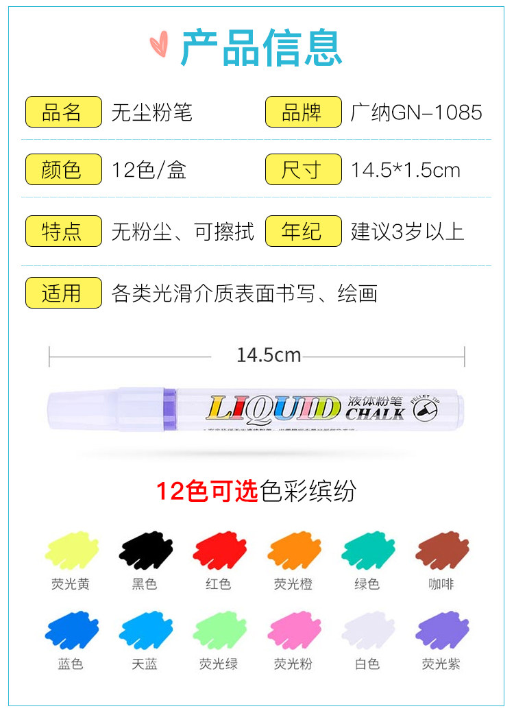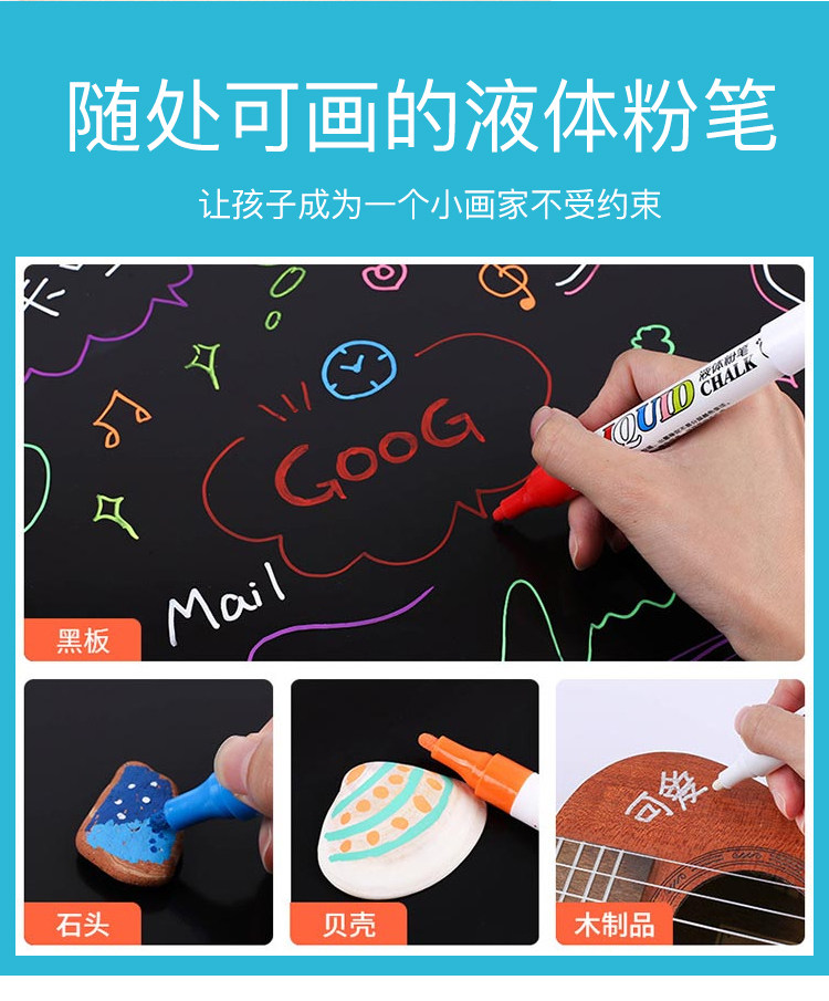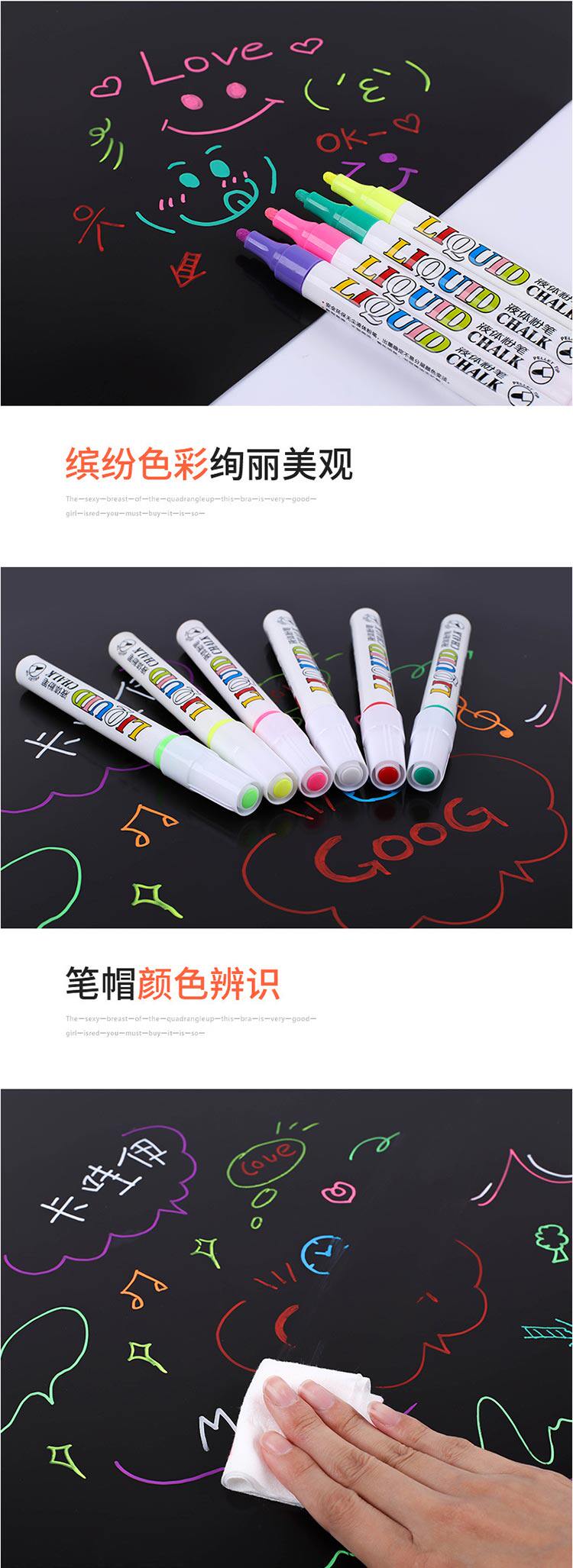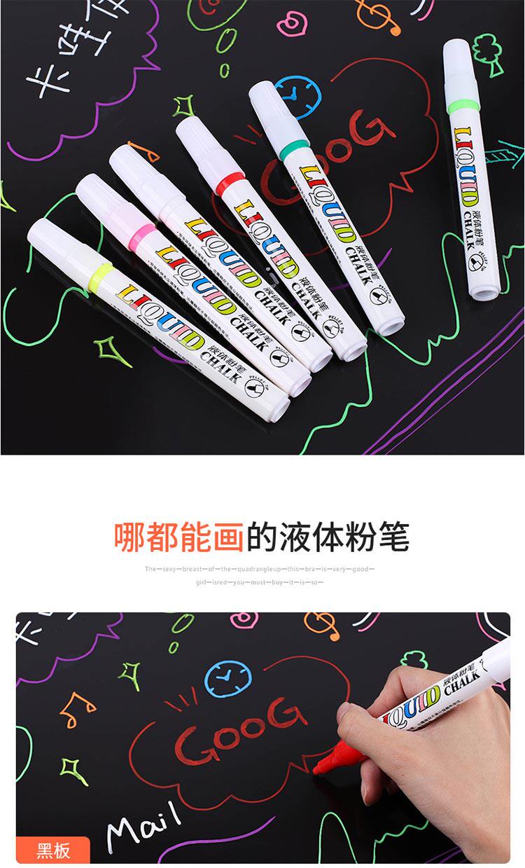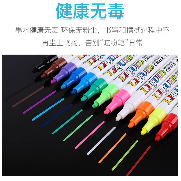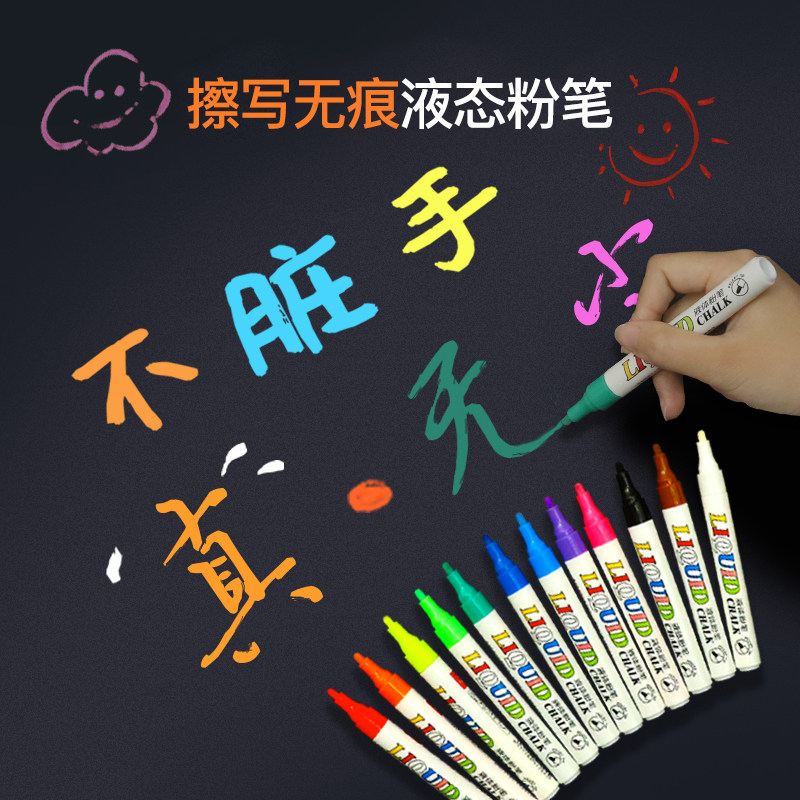Жидкий мел 2020 без пыль разноцветный Флуоресценция детские Учитель может протирать водорастворимым белый черный панель Граффити-пропагандистская живопись