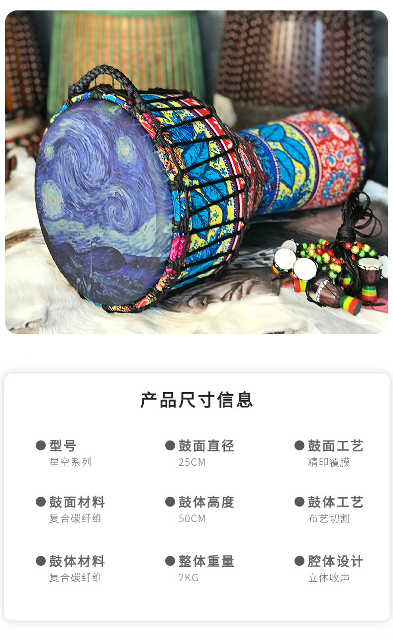 Карбон VI-African Hacker PVC стандартный Quai-10-дюймовый 8-дюймовый Lijiang рука для воспроизведения барабанов для воспроизведения взрослых новичков водонепроницаемый прочный
