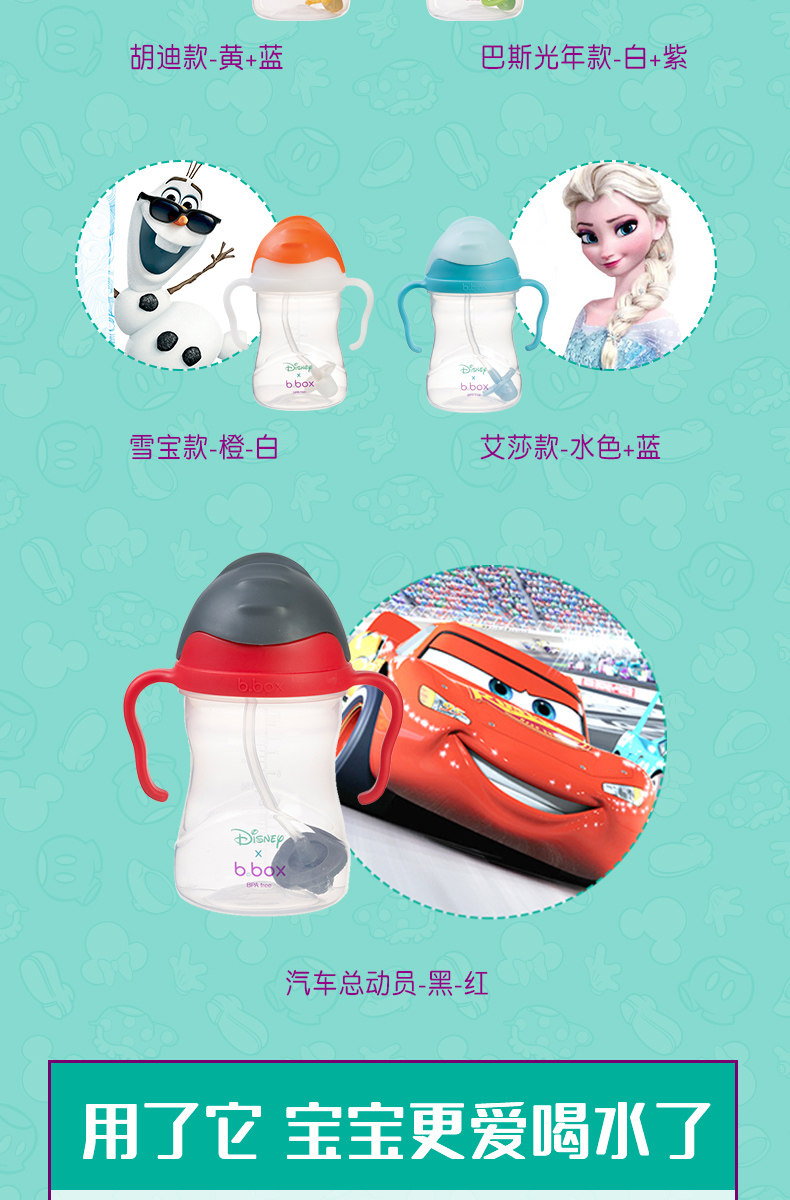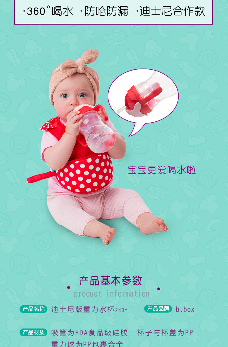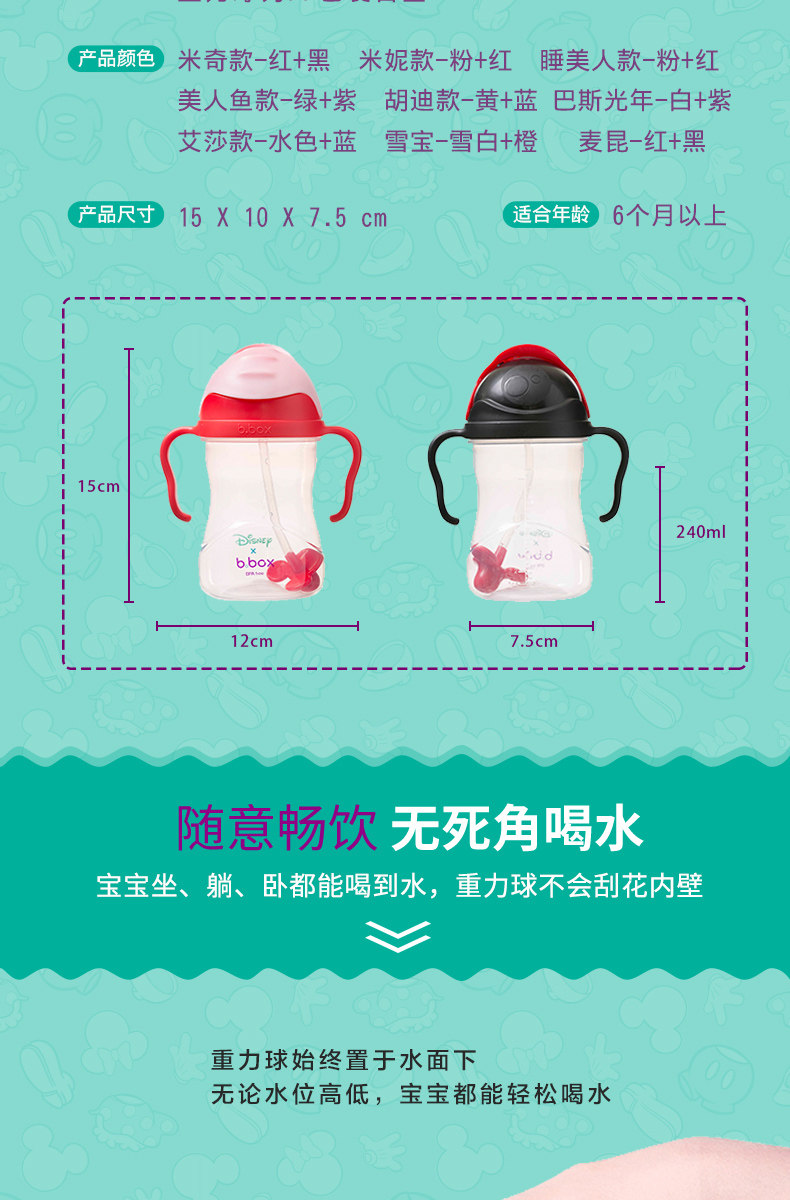 【Прямой】B.Box. детские Соломенная чашка детские Гравитационная шариковая утечка, питьевая чашка 240 мл Диснея версия на младенца