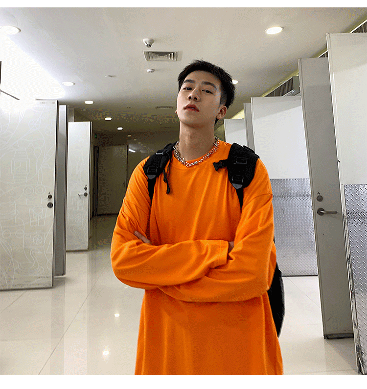 @ 港 仔 文艺 мужской Летние вставки для влюбленной пары Свободный чистый хлопок верх одежда корейская версия модные длинный рукав Футболка нижняя рубашка осенняя одежда