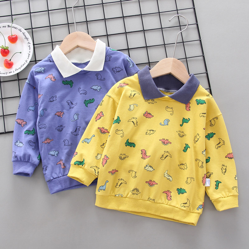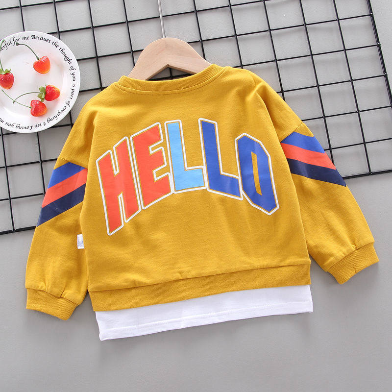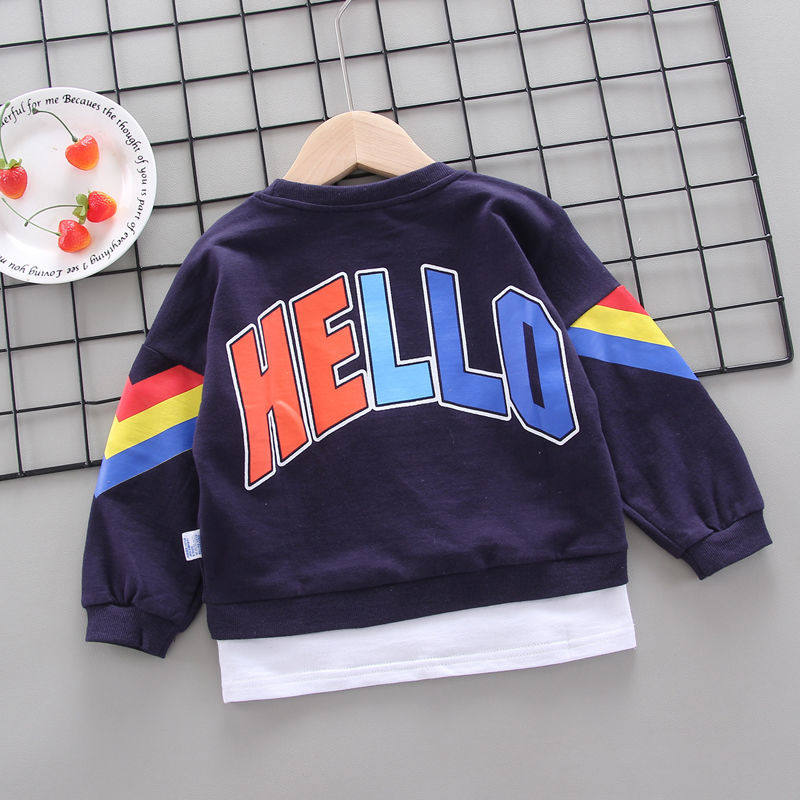 Детское на мальчика Футболка длинный рукав Осенняя одежда в западном стиле для детей тонкая стиль детские верх Прилив одежды демисезонный детские Рубашка хлопок