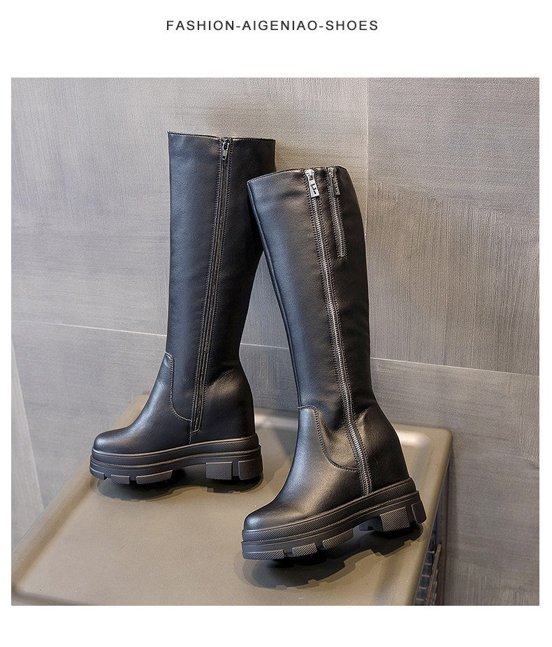 Но колено высокие сапоги Женский 2020 новая коллекция высокие сапоги берцы толстая Увеличение внизу высокая зима замшевый высокие рыцарь сапоги
