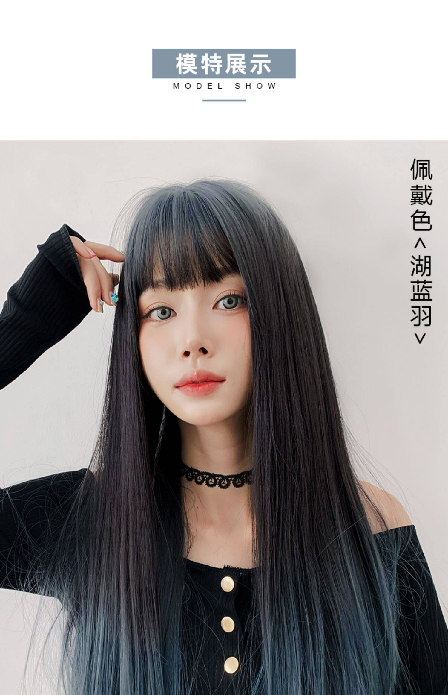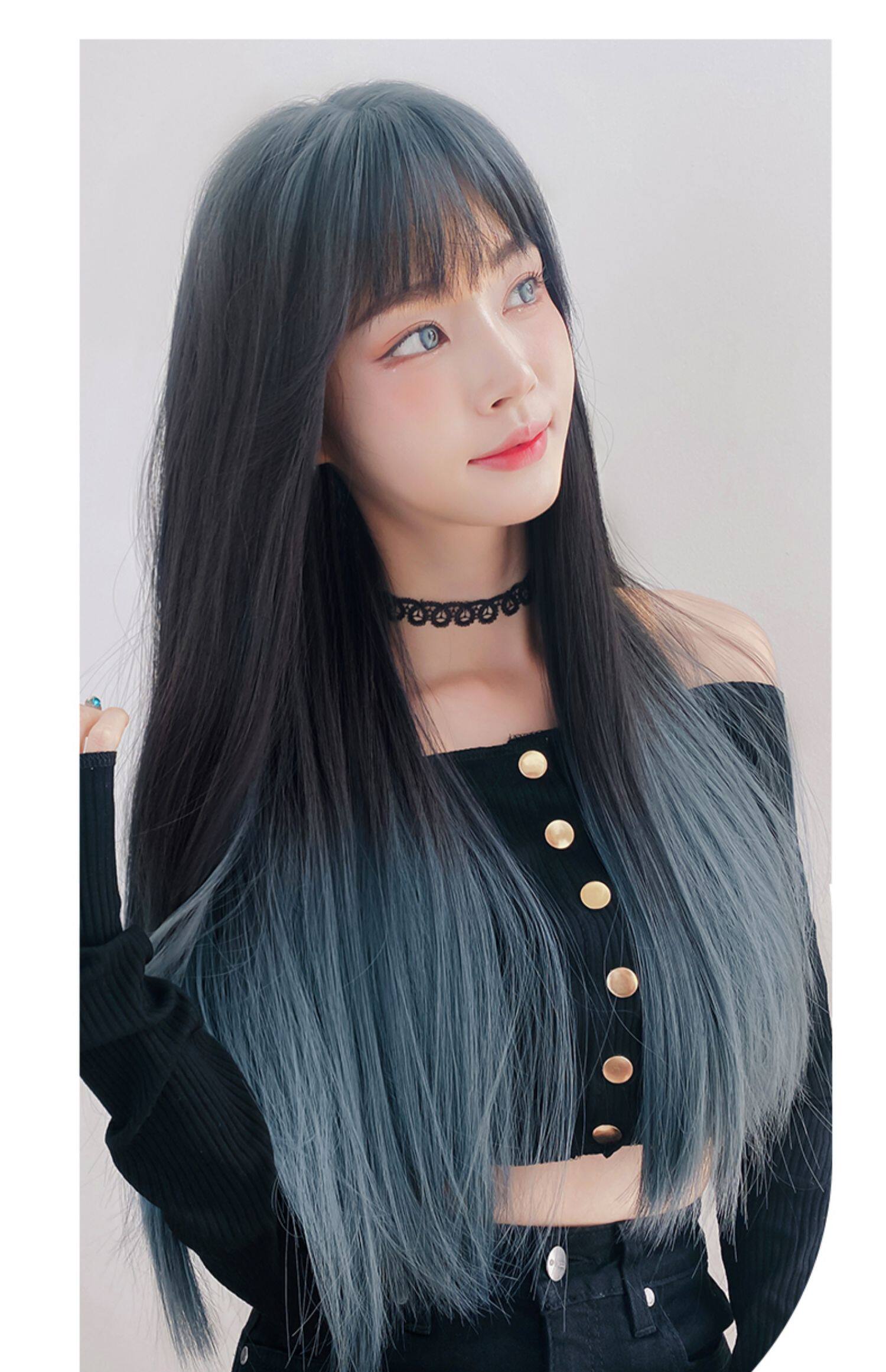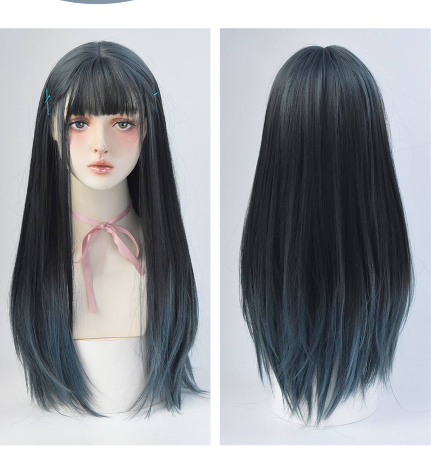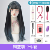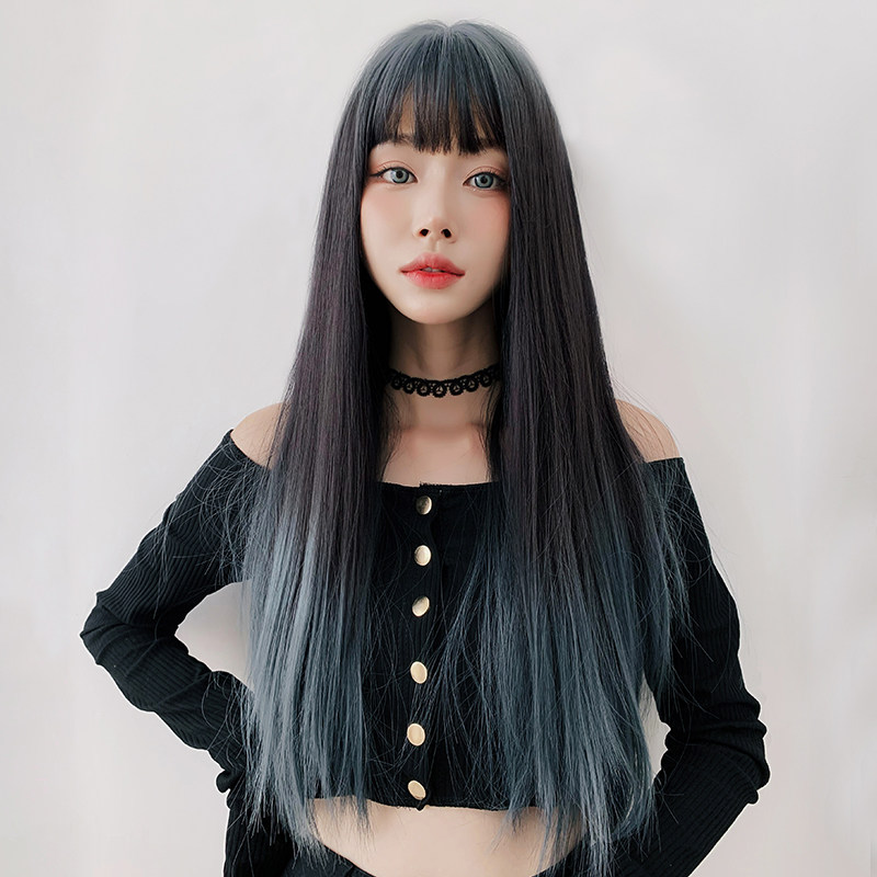 Парик, женские длинные волосы для волос Градиентный воздух, Лю Hai красный голубой Целая длинная прямая Лолита полностью Заголовок