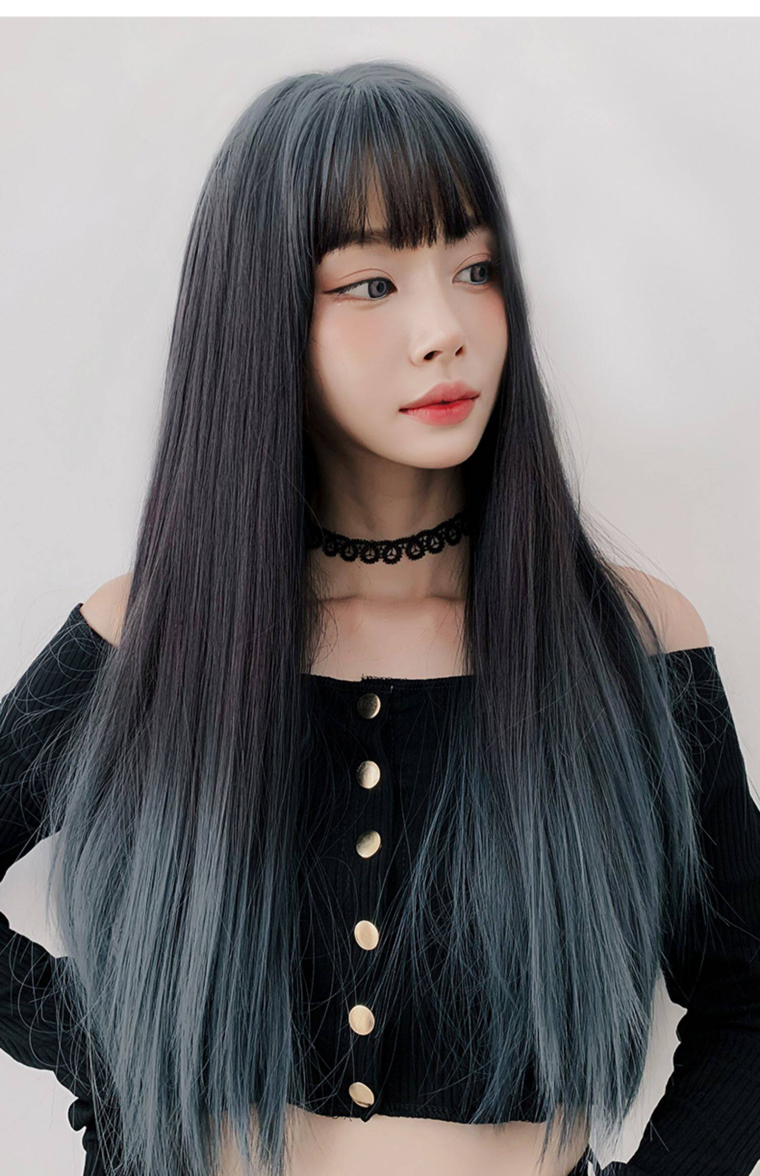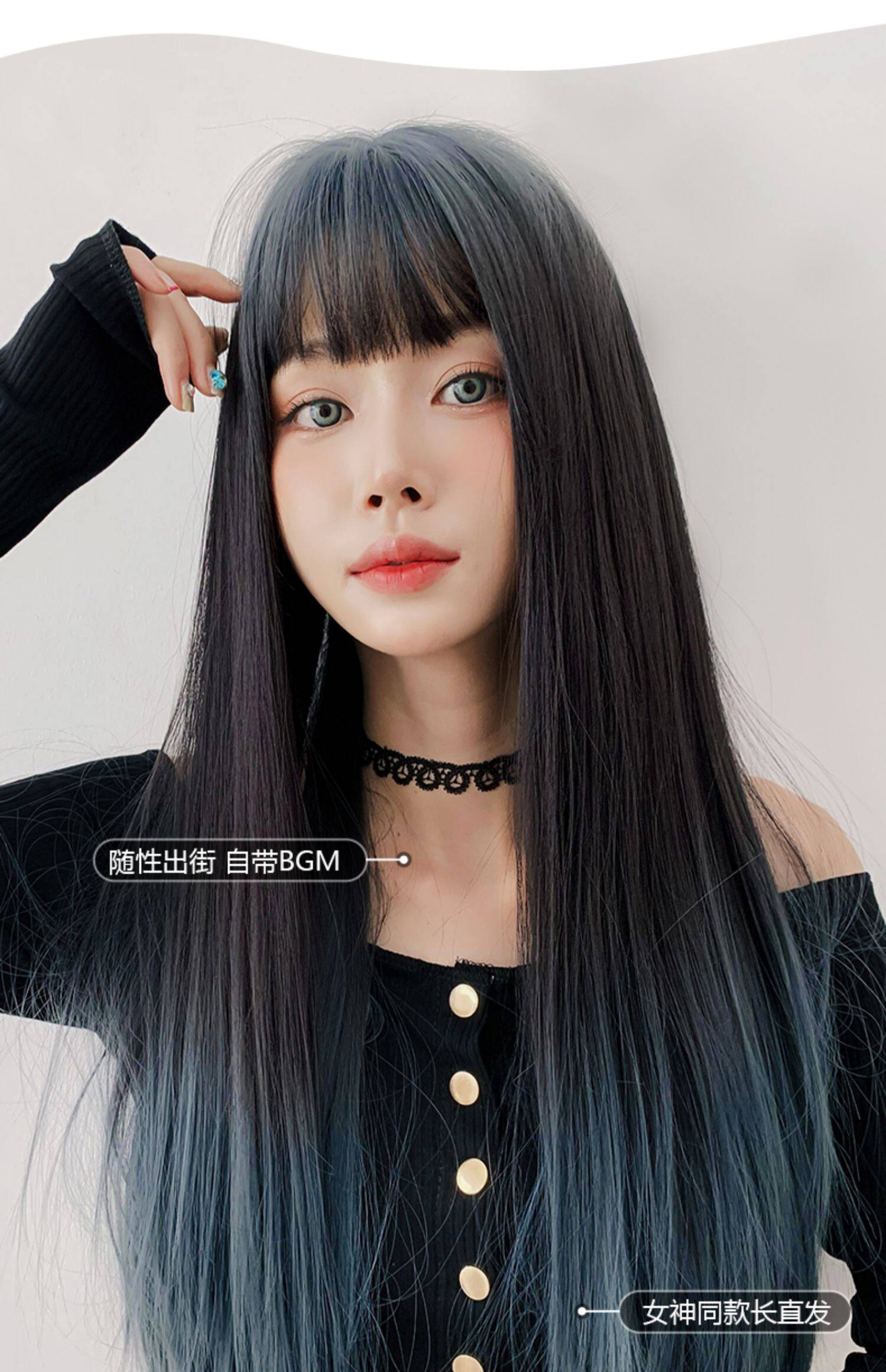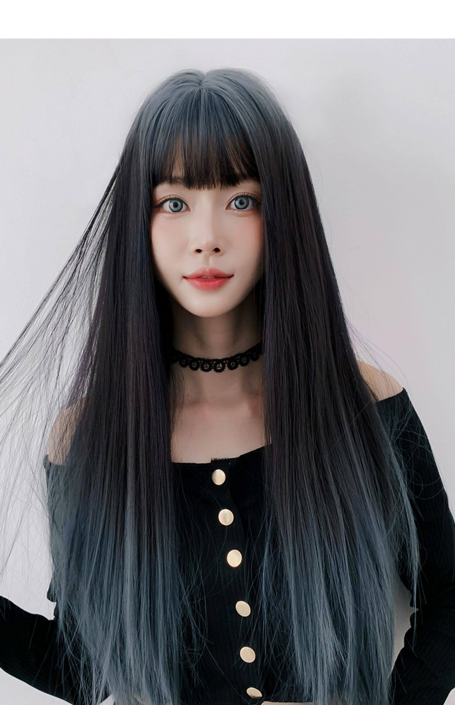 Парик, женские длинные волосы для волос Градиентный воздух, Лю Hai красный голубой Целая длинная прямая Лолита полностью Заголовок