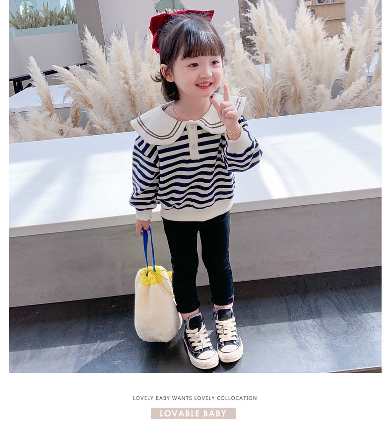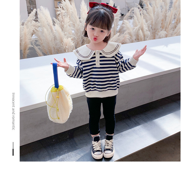 Цвет: Комплект 【 полосатый принт верх Одежда + черный Брюки】, Полосатый принт верх одежда, ШтаныСправка рост: 90cm, 100cm, 110cm, 120cm, 130cm, 140cm