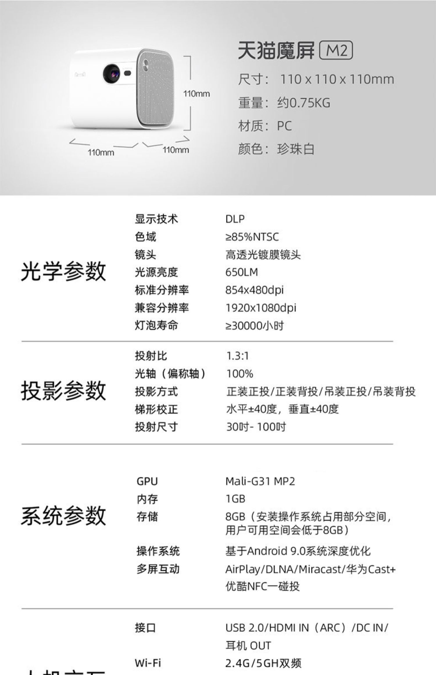 【Отдых на природе с проекцией 】Tmall Magic Screen M2 с проекцией Гранж бытовой стены маленький мини портативный мобильный телефон с проекцией Домохозяйственная спальня общежитие студентов без Линия умный домашний кинотеатр внутренний Батареи
