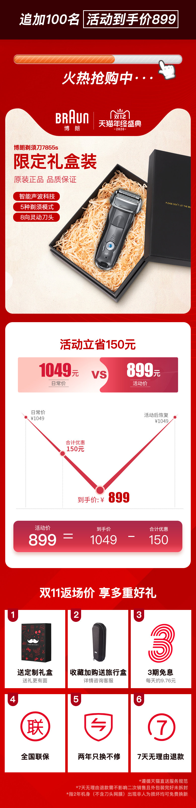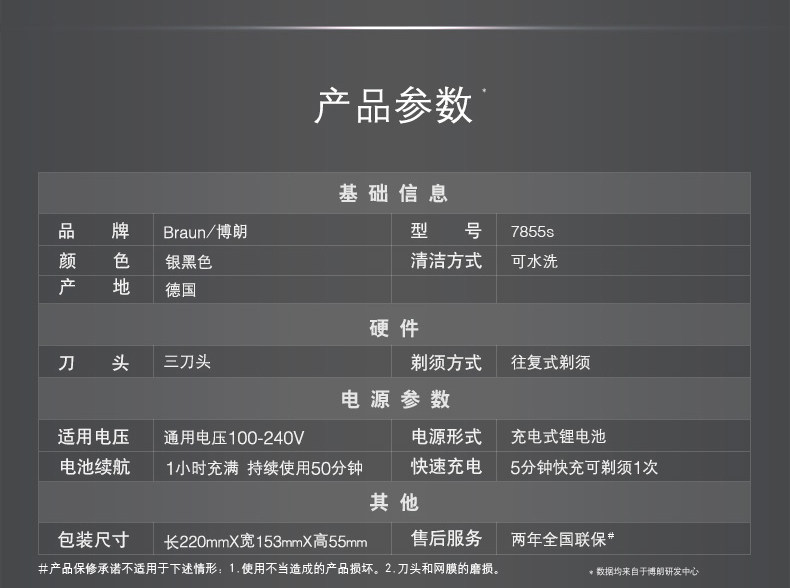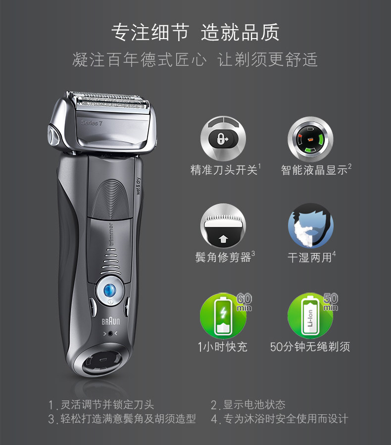 Электробритва Braun / Braun 7 Series 7855S с возвратно-поступательным движением бритва двойного назначения для влажного и сухого бритья, импортированная из Германии