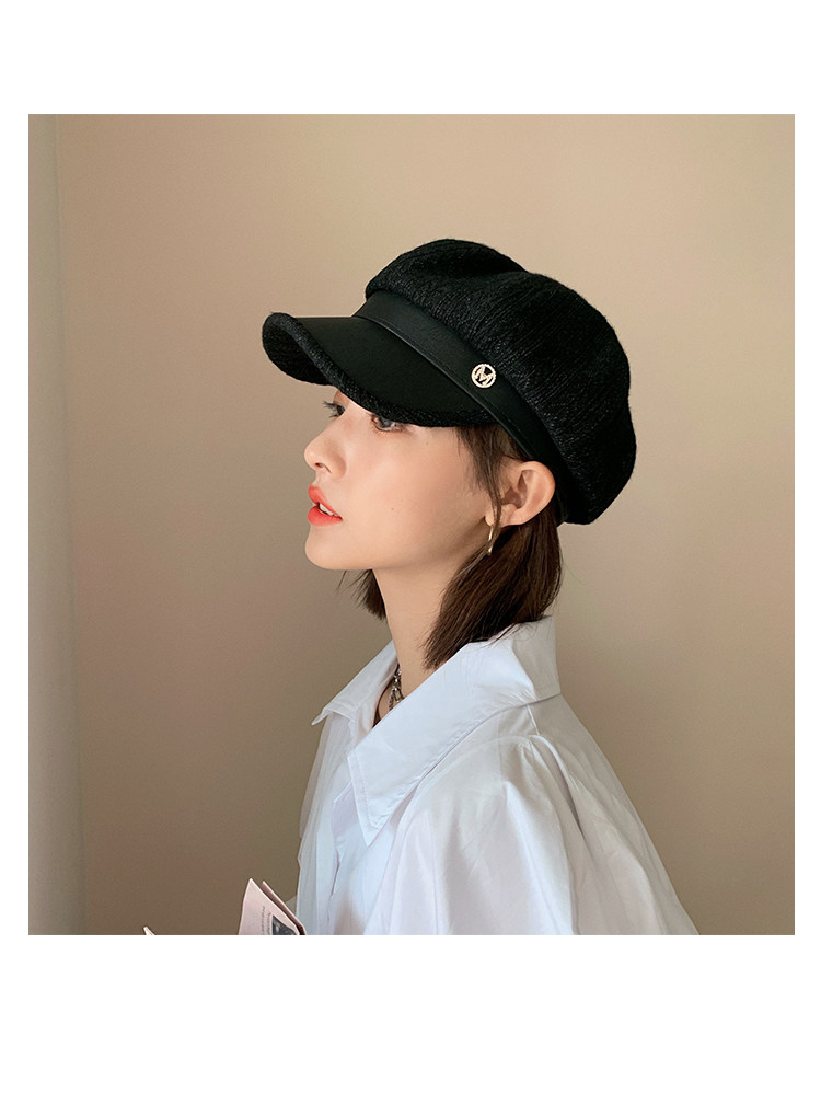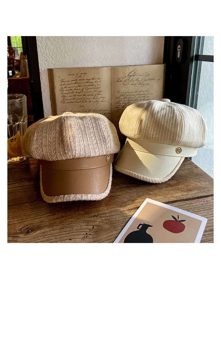 ПУ кожаный берет шапка женский осень-зима время года корейская версия прилив английский стиль винтаж слово мама полосатый принт Bajiaxiao Детский художник