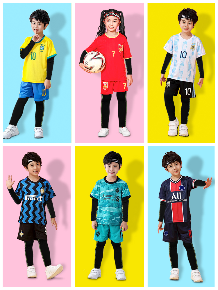 Детские Футболка комплект осень-зима сделанный на заказ мужские и женские Детский сад короткий рукав Аргентина Месси Джерси Китая Ву Лей