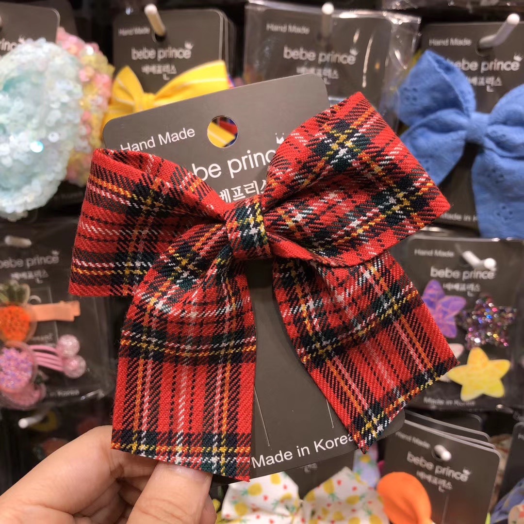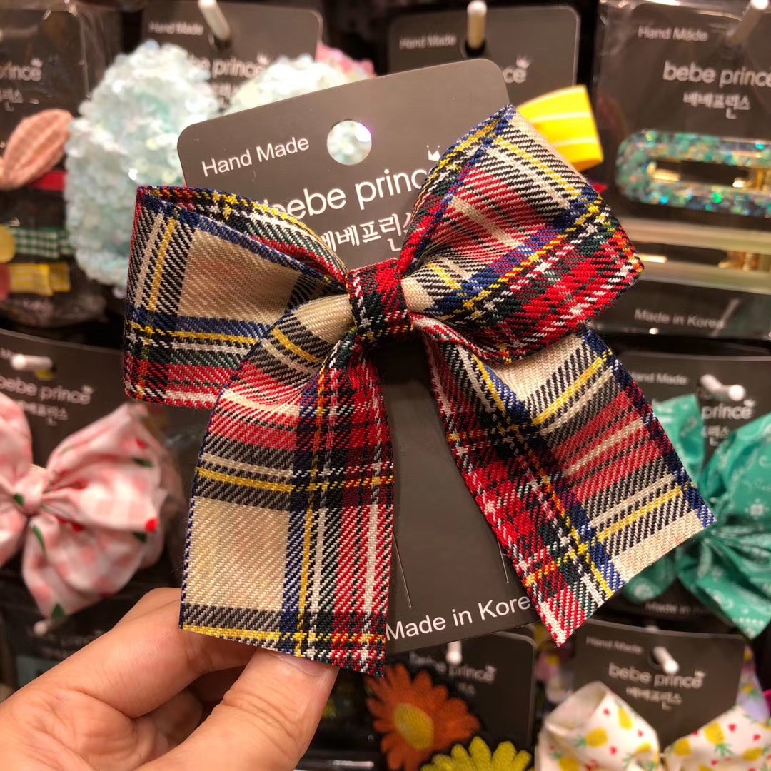 【 товар в наличии 】 корейский Bebe принц аксессуары для волос осень-зима стиль клетчатый бантики Ложка утки