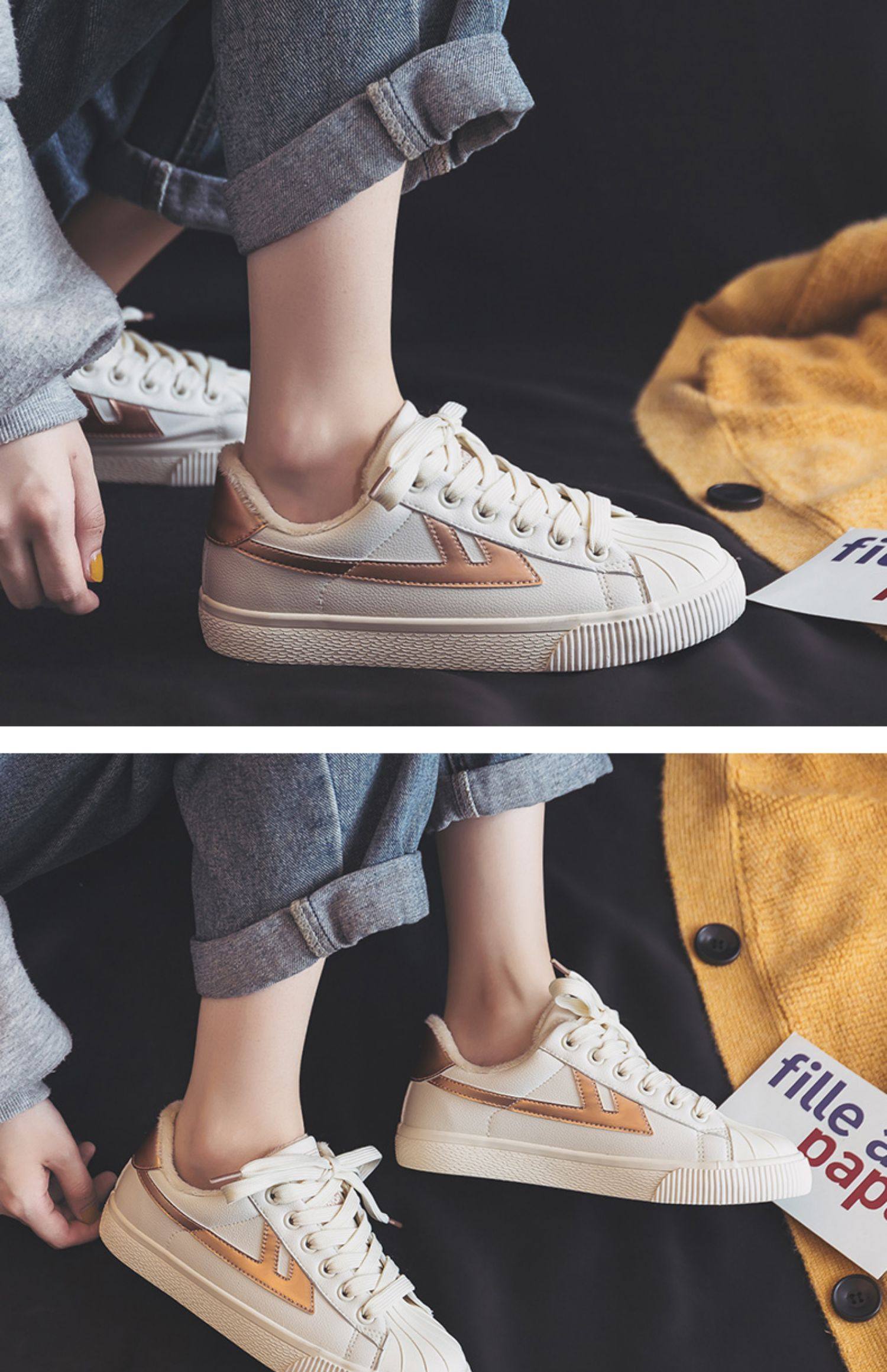 Откинуть назад ботинки с утеплением Женская зима замшевый Небольшой белый Обувь 2021. осень-зима время года новая коллекция Дикий утепленный удерживающий тепло Студент два ботинки с утеплением сын