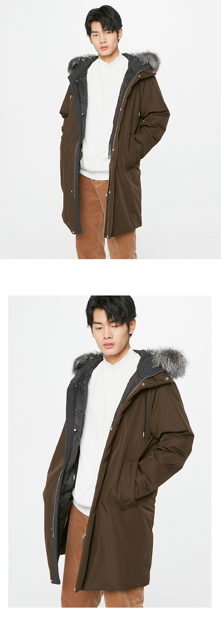 ВЫБРАННЫЙ Slade мужской новая коллекция мех лисы утиный пух фасон средней длины стиль капюшон пуховик S|420412043