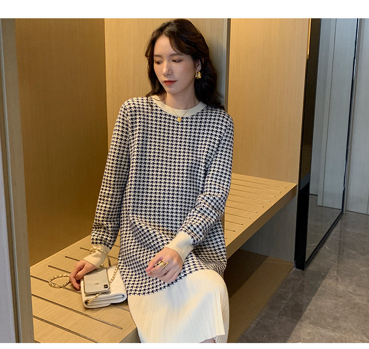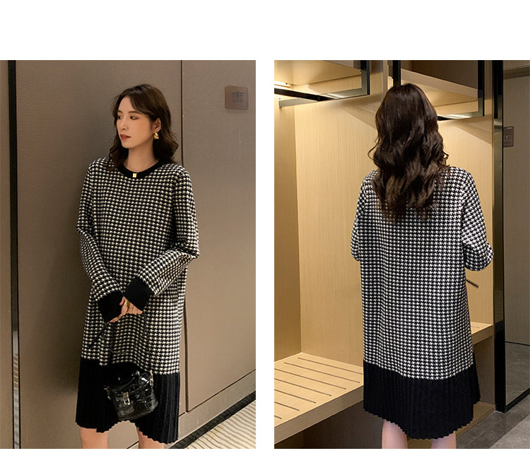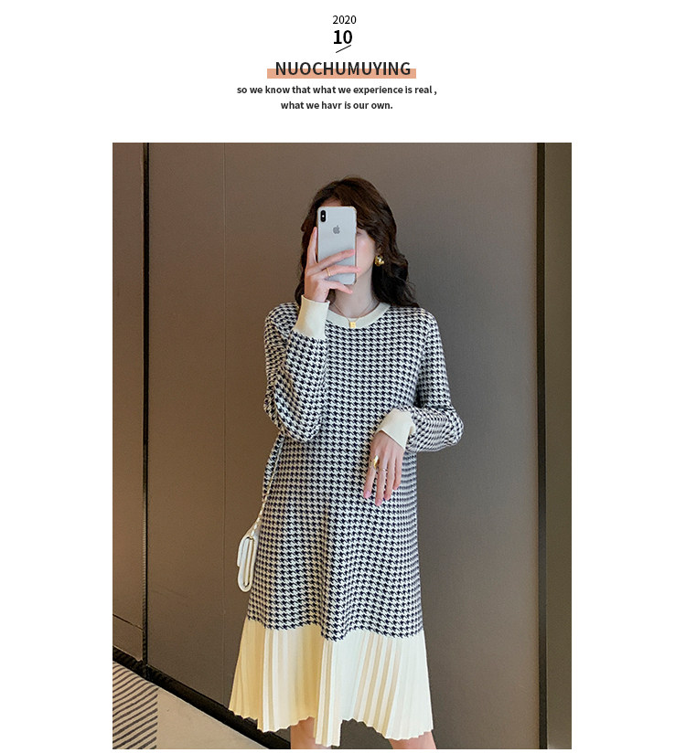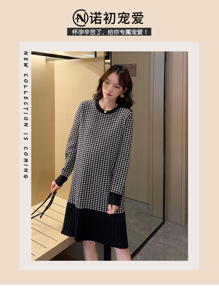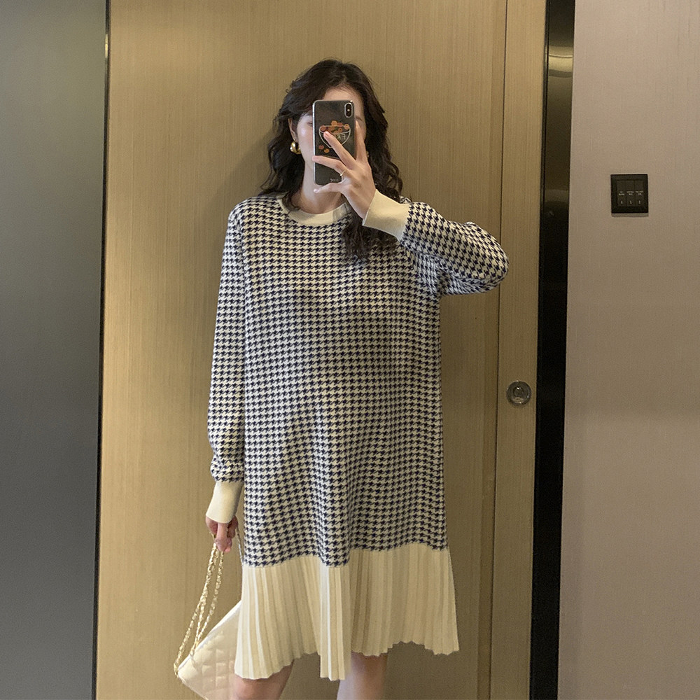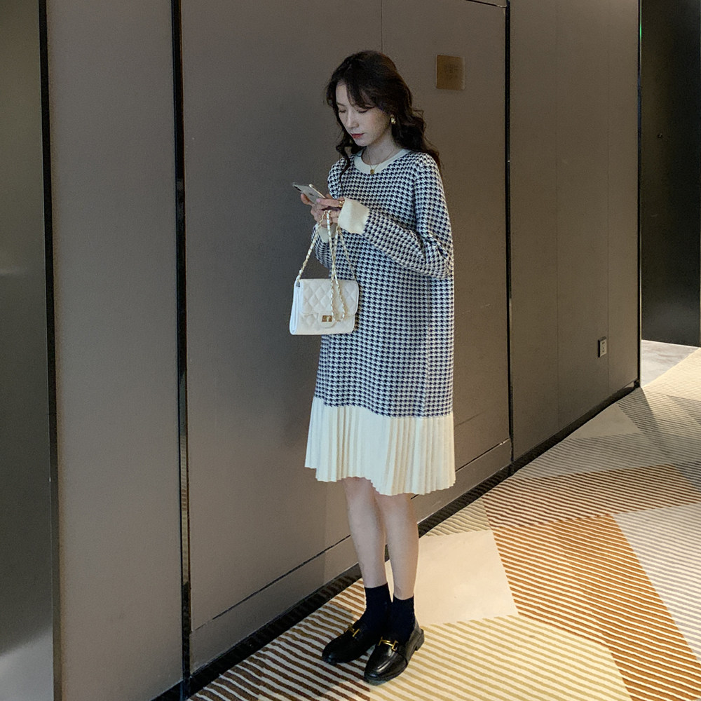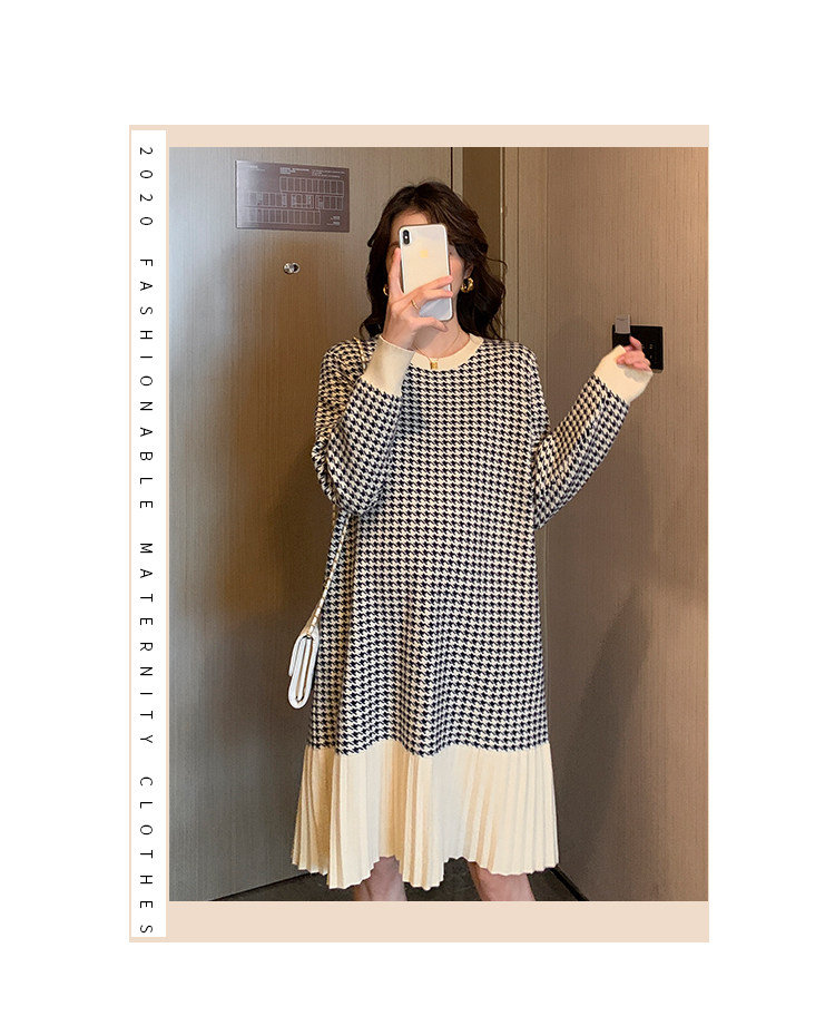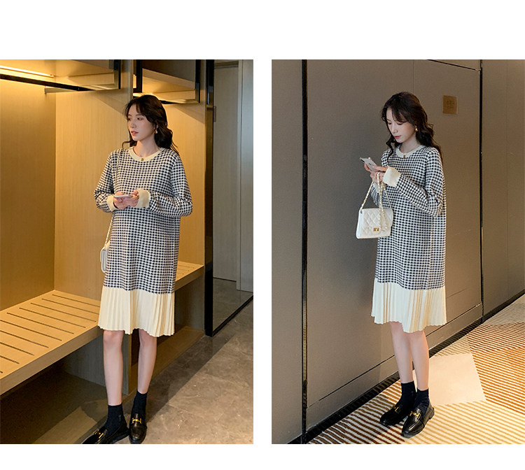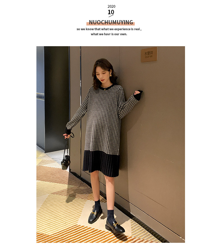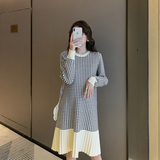 Беременная женщина свитер осень-зима популярный стиль Причудливый корейский прогрессивный Thousand птица сплайсинга слово Юбка стиль трикотажный платье