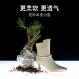 7Р9 трюк новый сапоги Женская зима с острым носом широкий каблук Дикий на высоком каблуке ботинки Воздуха хлопок 7cm
