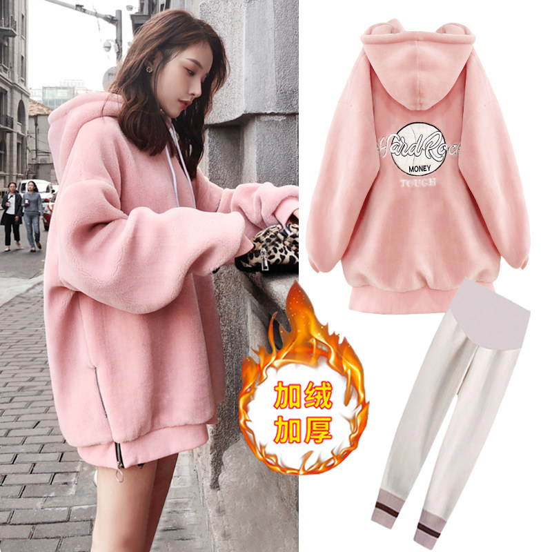 Зимняя одежда для беременных комплект популярный Западная газовая сеть красный замшевый утепленный Мама прилива осень-зима стиль Два наборы верх одежда куртка Внешний износ