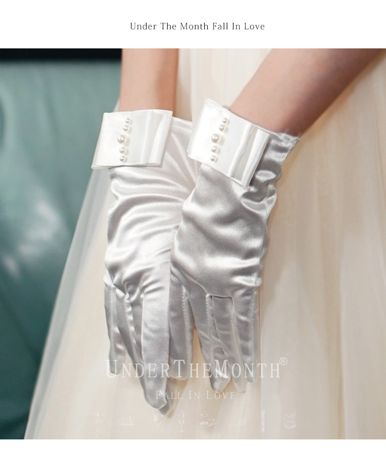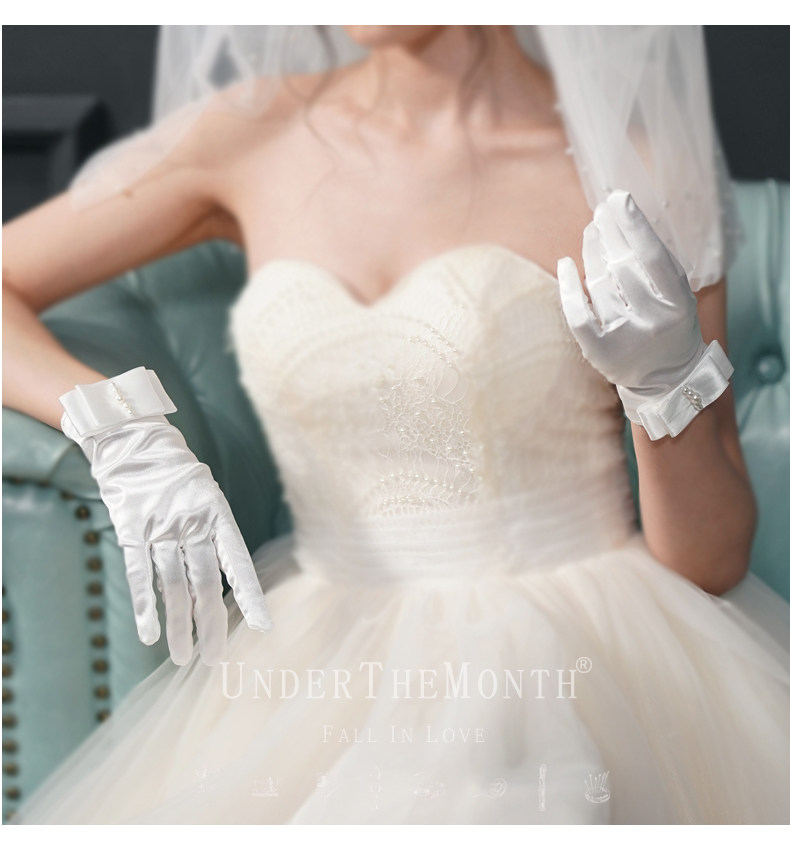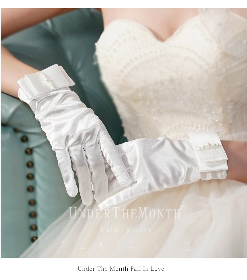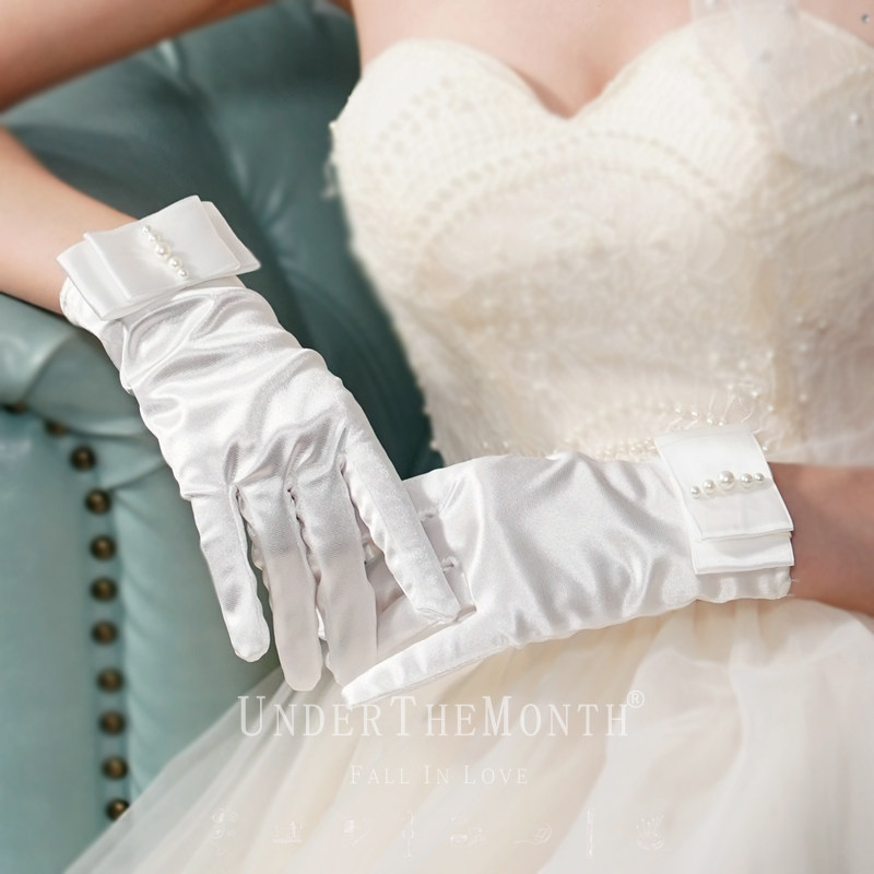 Новый мама свадебное Свадебное платье короткий перчатки Спектакль перчатки с жемчужинами Атлас перчатки белый женский